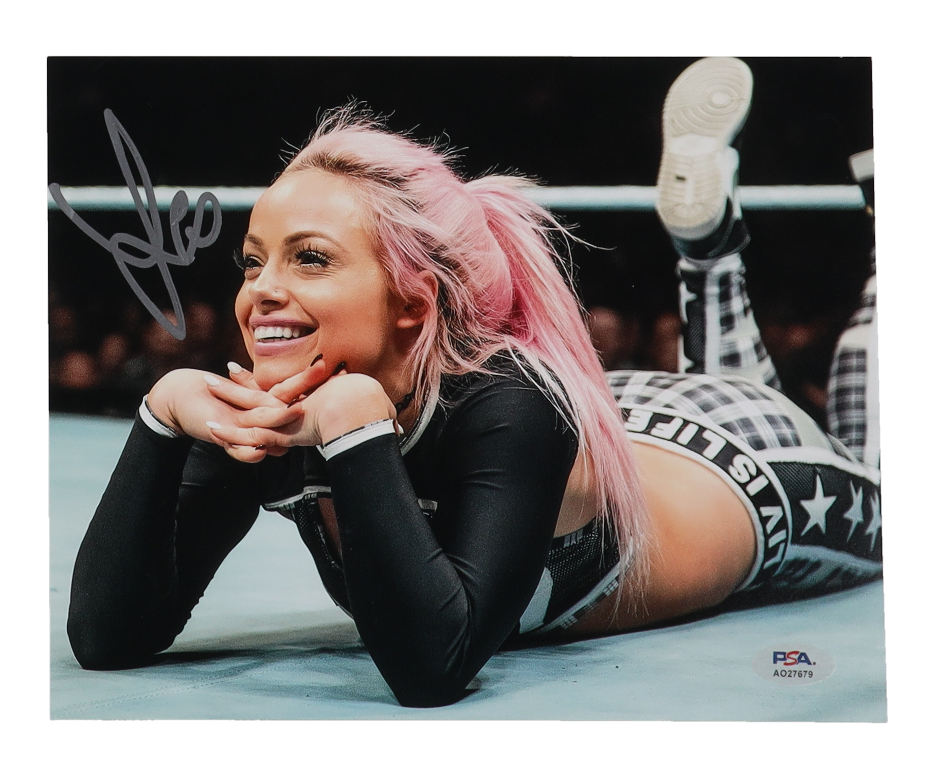 Photo measures 8" x 10" in size and has been hand-signed by Liv Morgan.