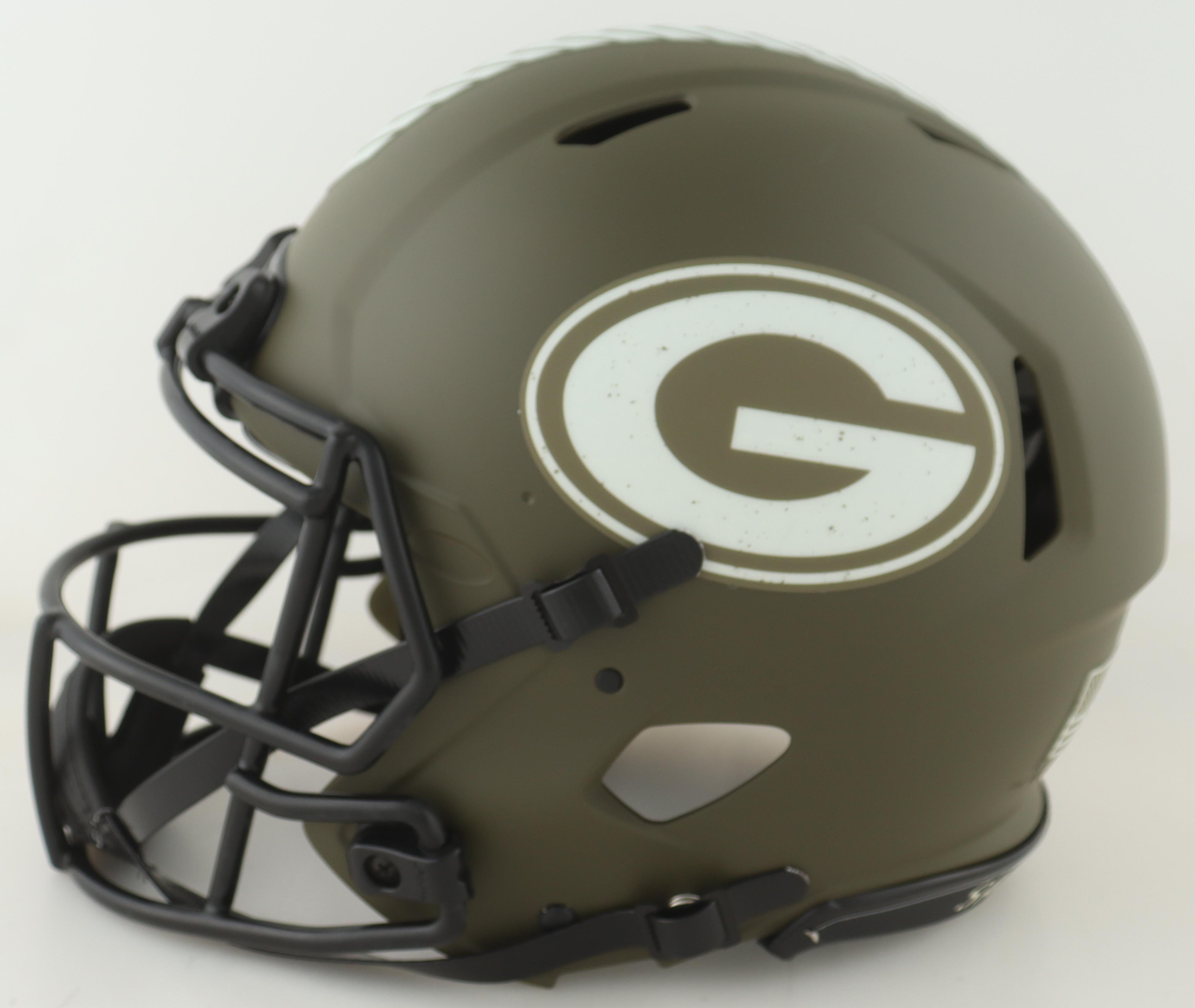 Riddell Green Bay Packers Salute To Service Full-Size Authentic On-Field Speed Helmet hand-signed by Romeo Doubs.