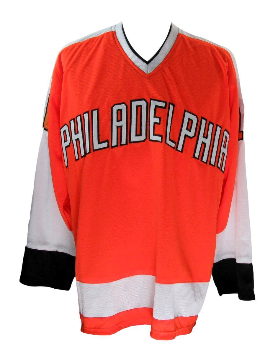 Custom jersey. Everything sewn on, size XL. Hand-signed and inscribed by Bobby Clarke (HOF).
