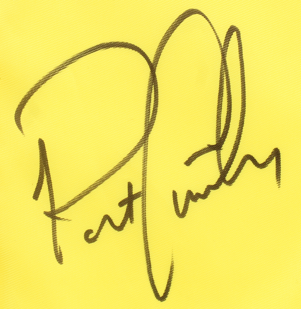 Golf pin flag measures approximately 14" x 20" in size and has been hand-signed by Patrick Cantlay.