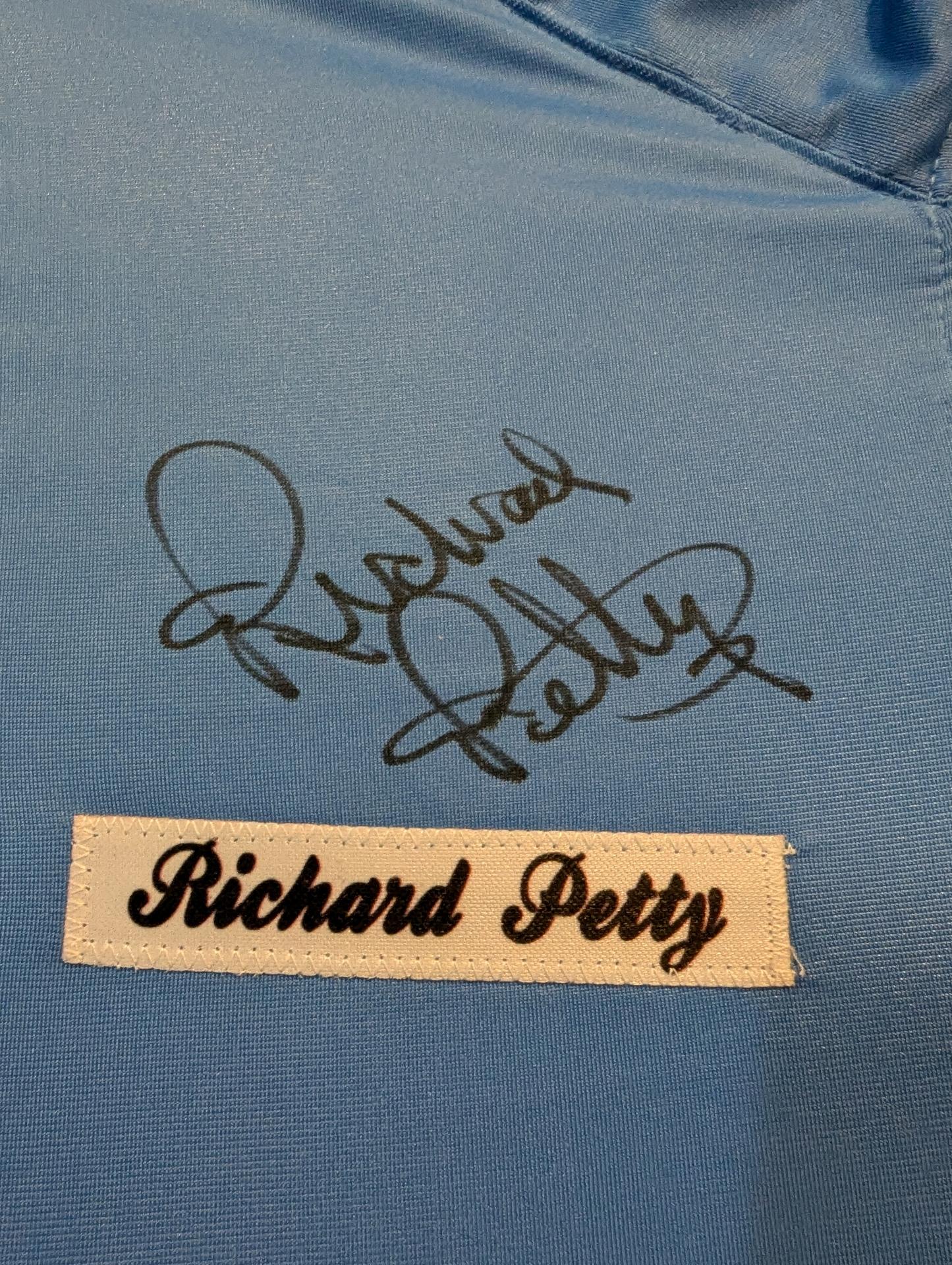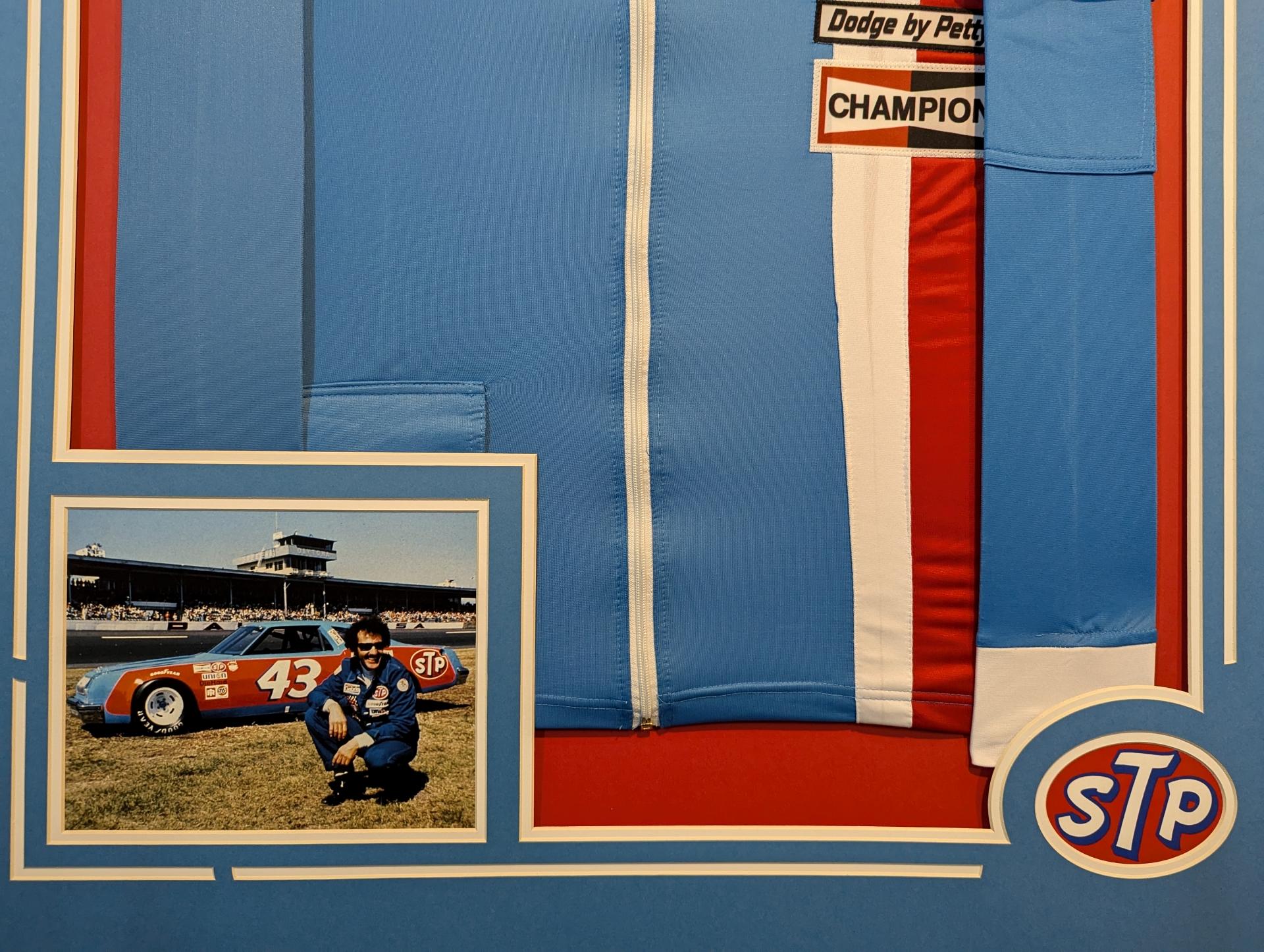 Custom frame measures approximately 34" x 42" in size and features a jacket that has been hand-signed by Richard Petty