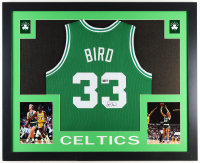 Custom frame measures 35.5" x 43.5" in size and features a jersey that has been hand-signed by Larry Bird (HOF). Please see photos for the condition of the item.