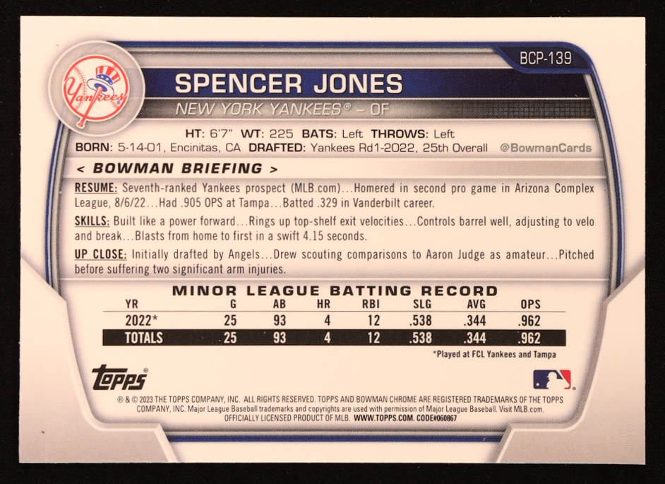 Spencer Jones 2023 Bowman Chrome Mega Box Prospects #BCP139 RC