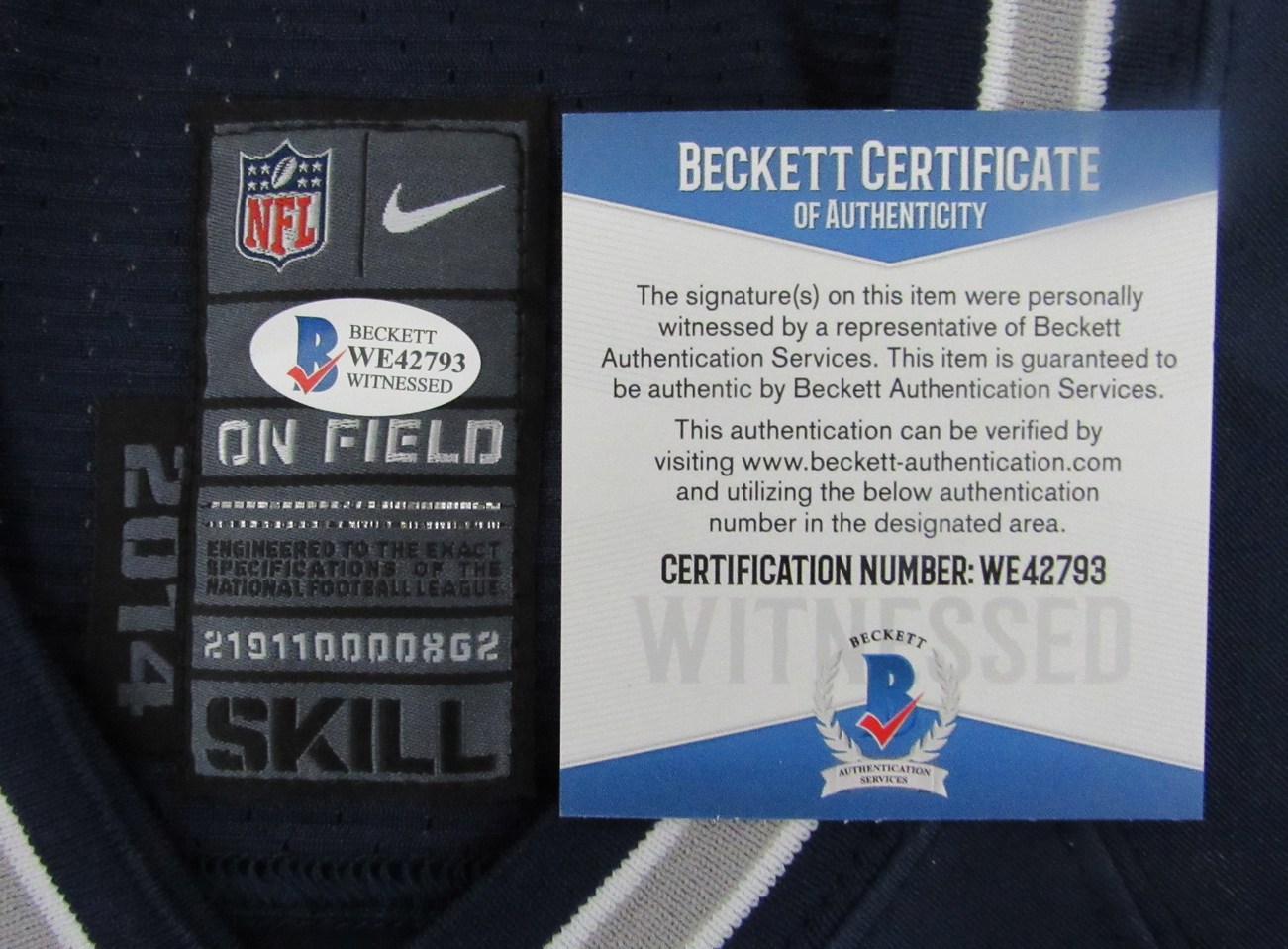 The autograph includes an official Beckett Authentication Services serially-numbered hologram and matching COA for authenticity purposes. The signing of this item was witnessed by Beckett.