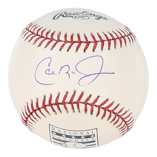 Rawlings Official Major League Hall of Fame Logo baseball. Hand-signed by Cal Ripken Jr. (Baltimore Orioles, HOF). Please note, the baseball is naturally toning.