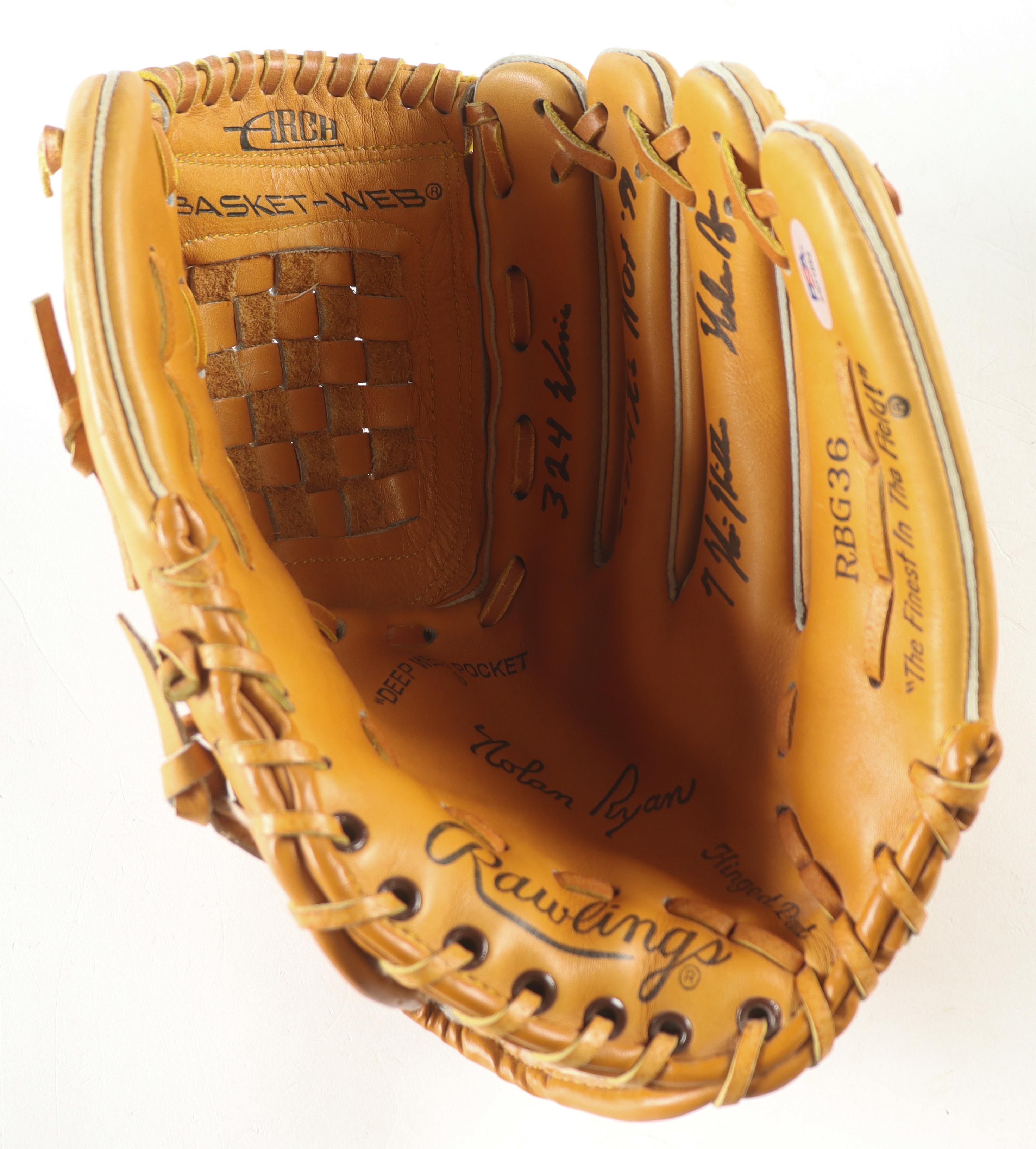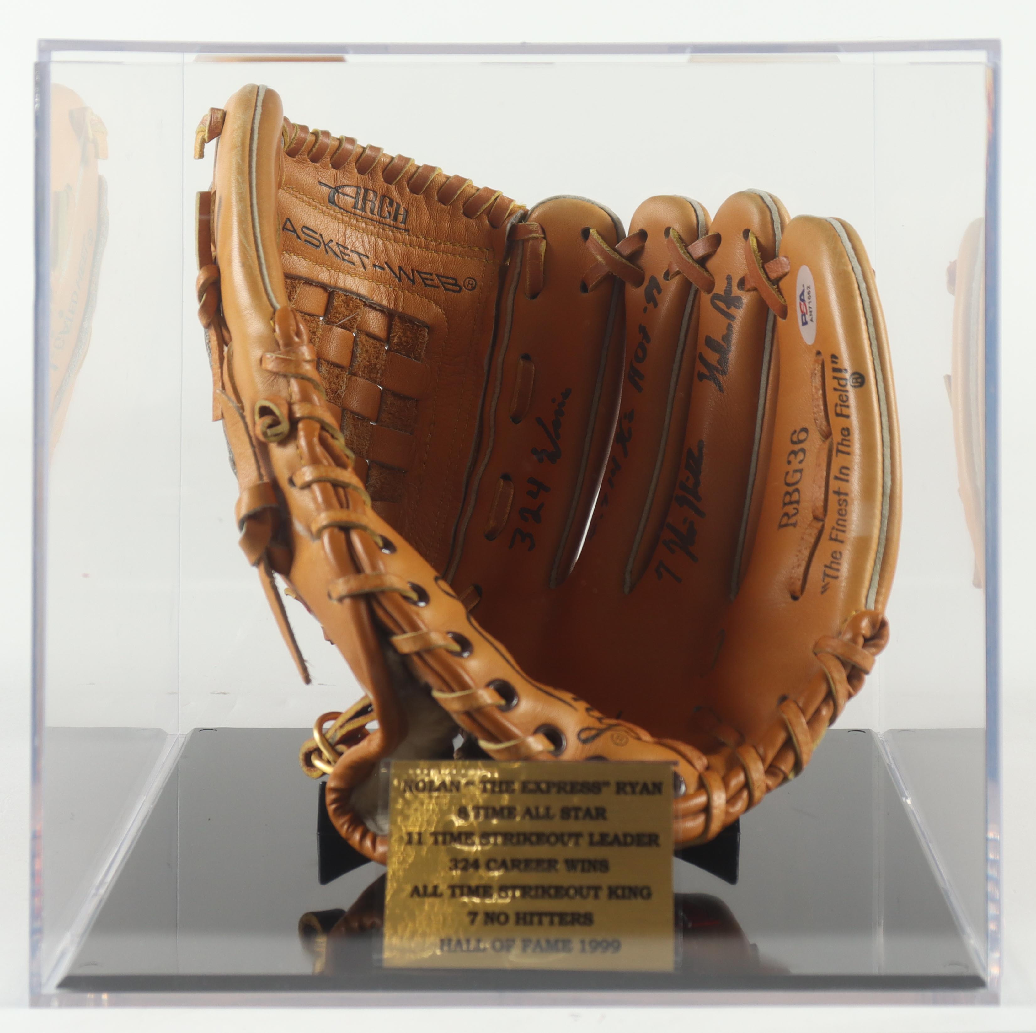 Nolan Ryan Signed Vintage Rawlings Player Model Baseball Glove with (4) Career Stat Inscriptions with Acrylic Display Case (PSA)