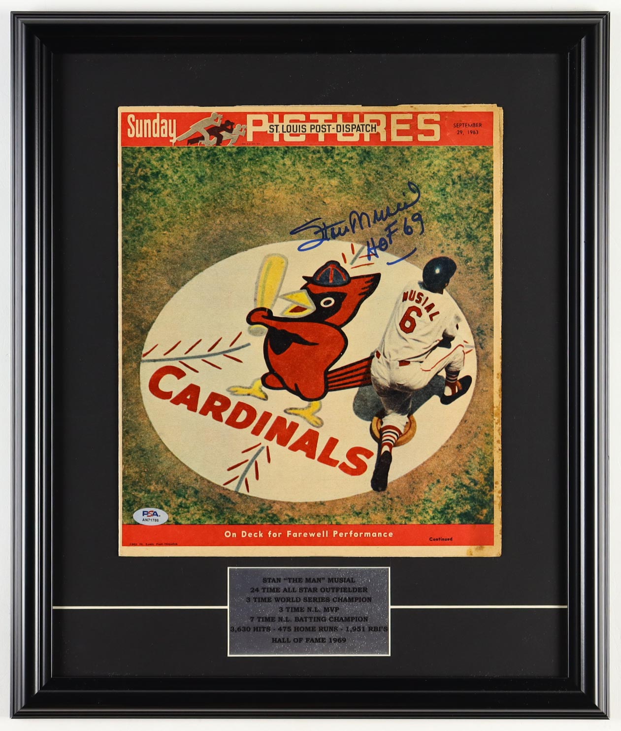 Stan Musial Signed Custom Framed St. Louis Post-Dispatch Magazine Paper Display (PSA)