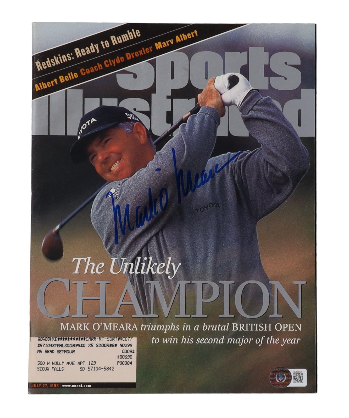 July 27, 1998 magazine has been hand-signed by Mark O'Meara (HOF).