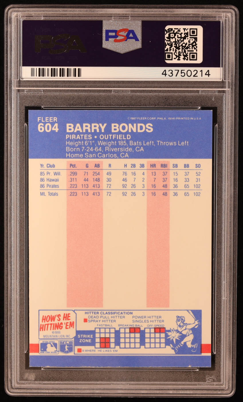 Barry Bonds 1987 Fleer #604 RC (PSA 9)