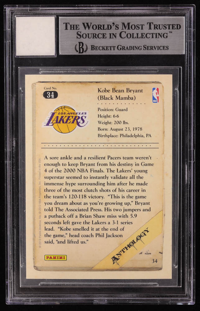 Kobe Bryant 2012-13 Panini Kobe Anthology #34 with 2007-08 Game Used Road Jersey (BGS Authentic)