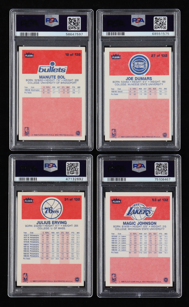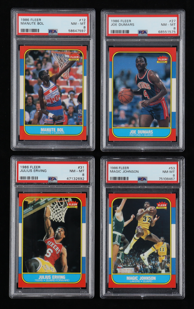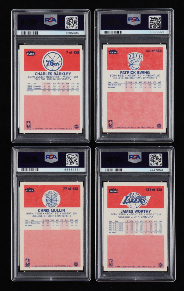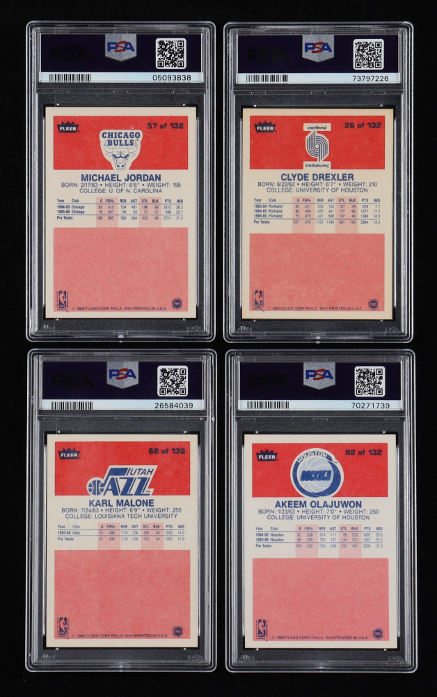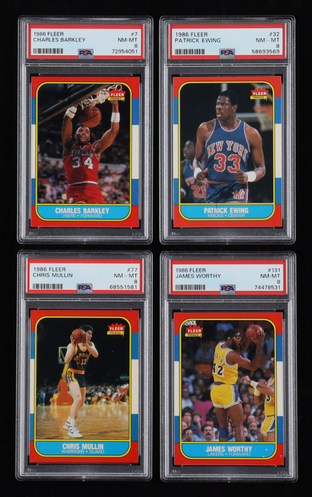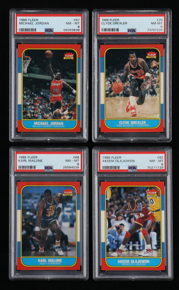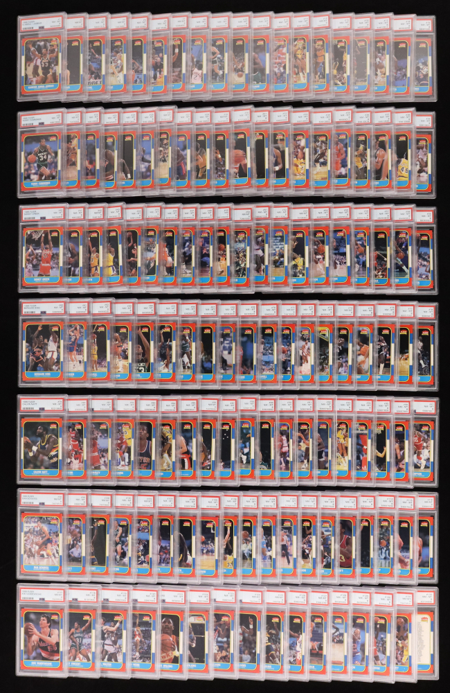 1986-87 Fleer Basketball Complete Set of (132) Cards ALL Graded PSA 8 with Michael Jordan RC, Charles Barkley RC, Hakeem Olajuwon RC, Clyde Drexler RC