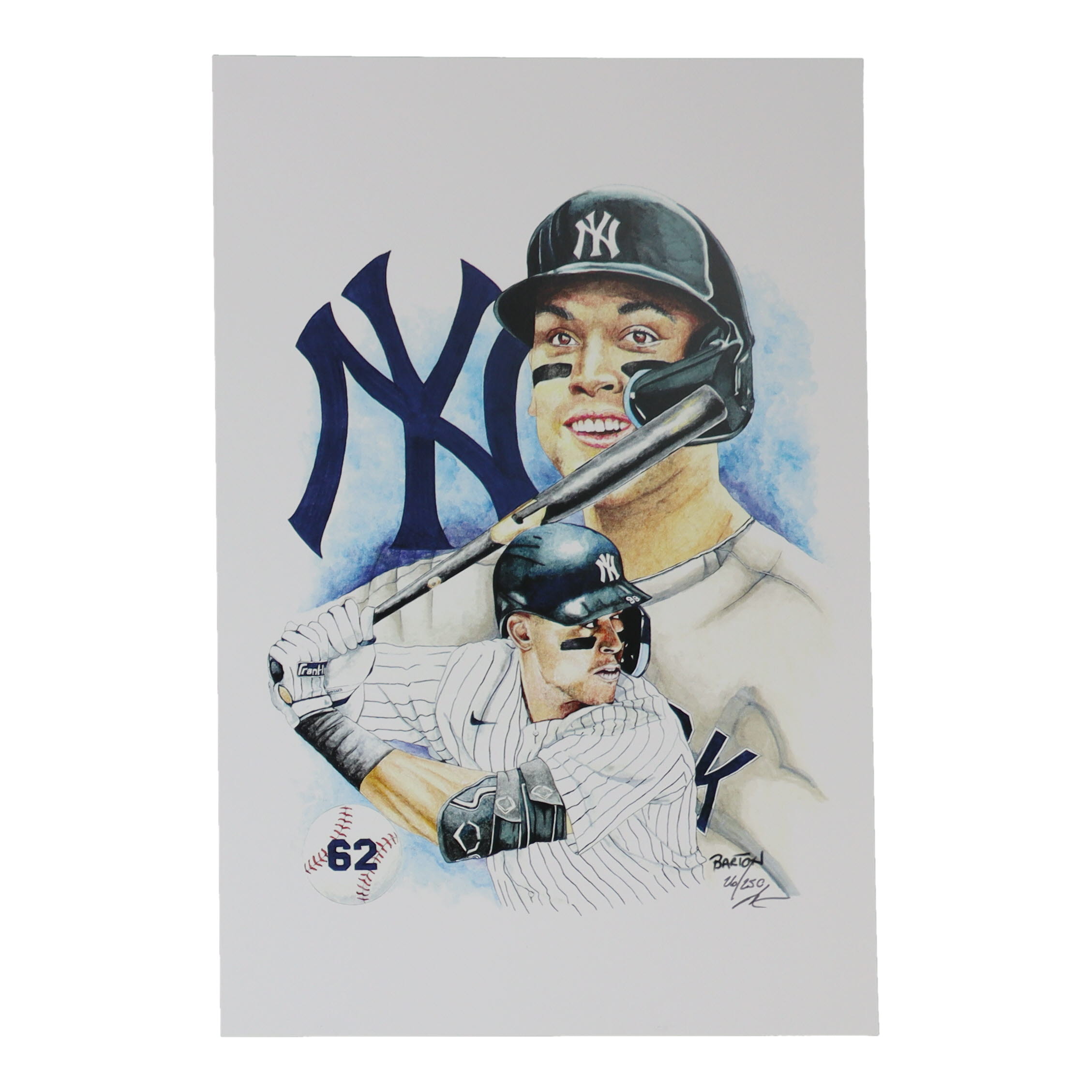 This limited edition giclee on high-quality matte fine art smooth 230gsm paper measures approximately 12" x 18" in size. The piece is hand-signed and numbered by the artist, Brian Barton and features Aaron Judge (New York Yankees, HOF).
