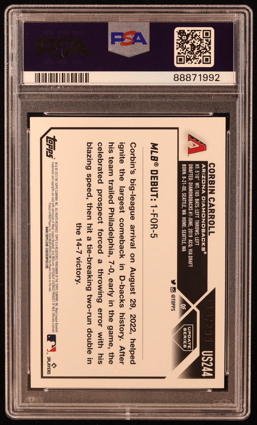 Corbin Carroll 2023 Topps Update Orange Foilboard #US244 RC #119/299 (PSA 10)