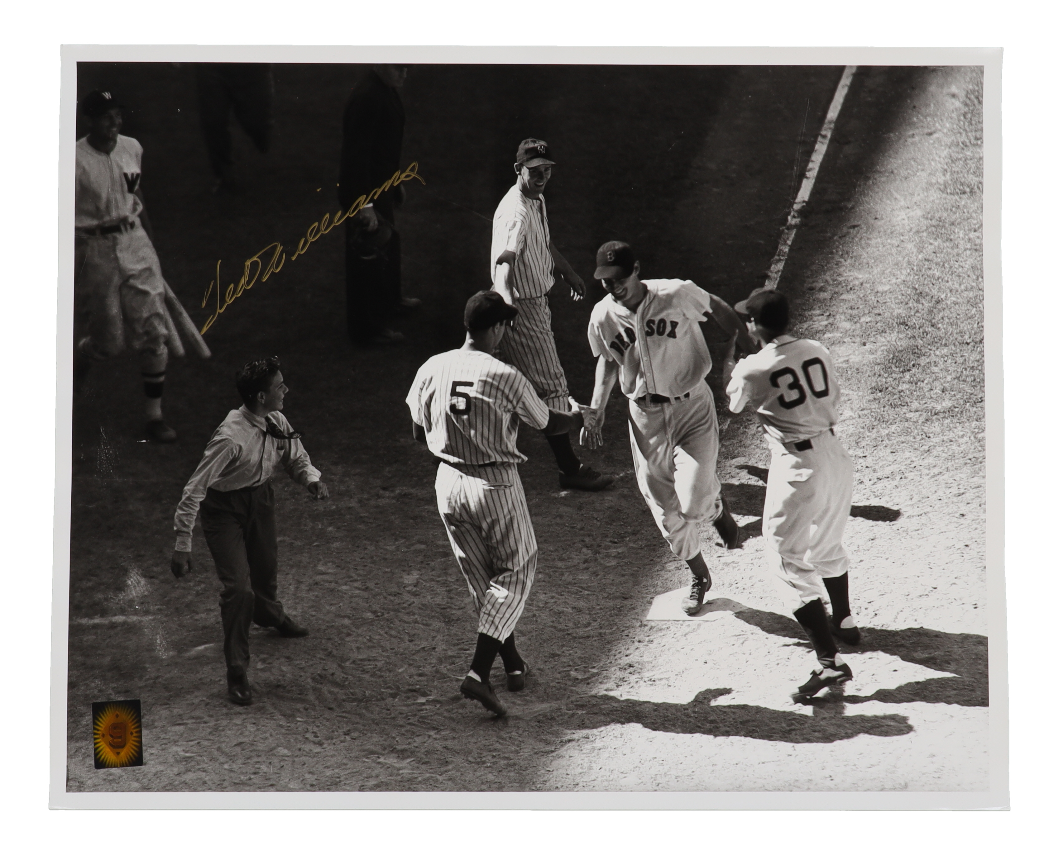 Photo measures 16" x 20" in size and has been hand-signed by Ted Williams (D. 2002, Boston Red Sox, HOF). Please note, warping on the edges of the photo.