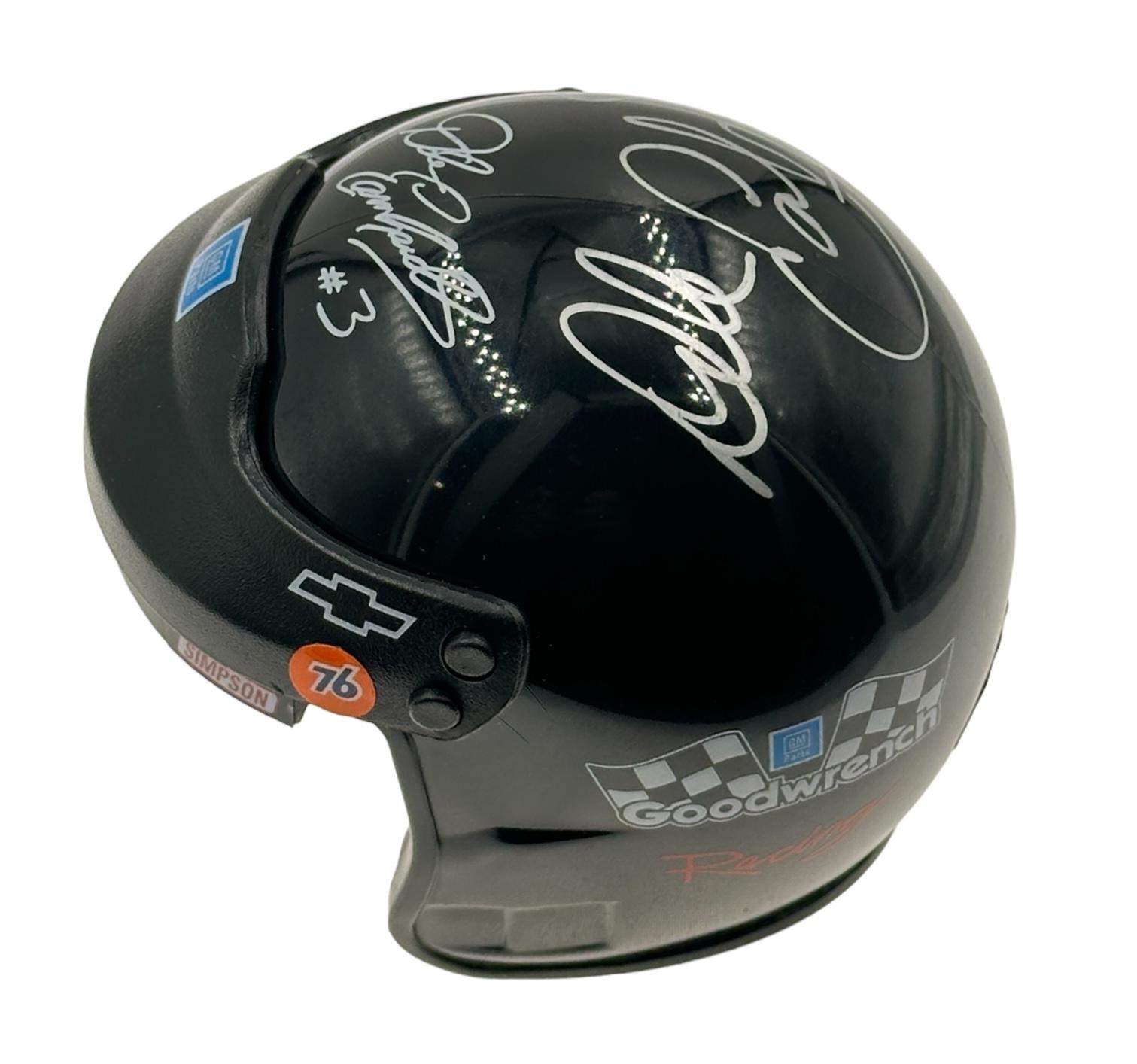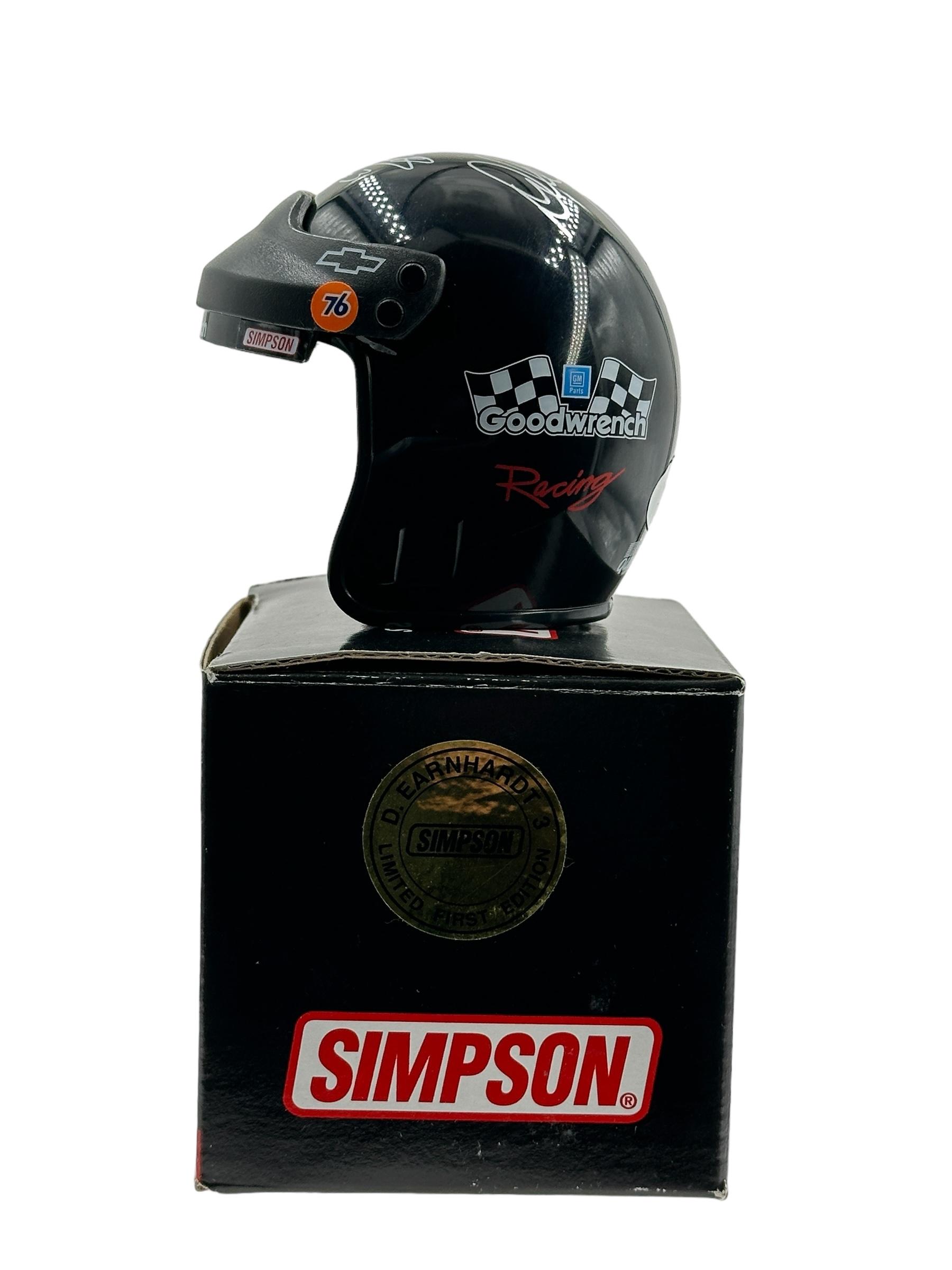 Simpson racing mini helmet has been hand-signed by Dale Earnhardt Sr. (D. 2001, HOF).