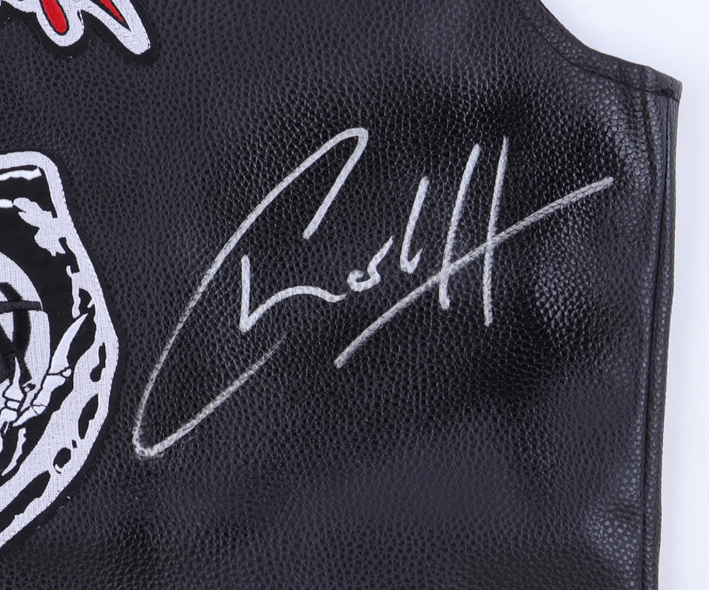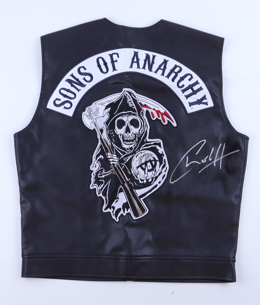 Custom vest with everything sewn on, size L, has been hand-signed by Charlie Hunnam (Jax Teller).
