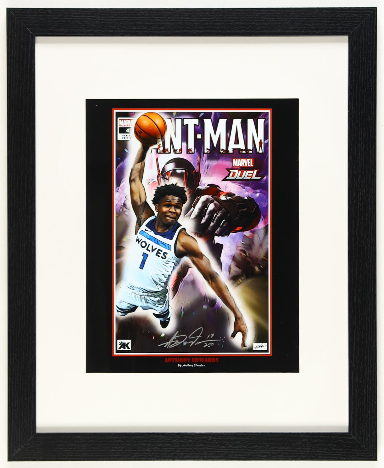 Custom framed display measures approximately 18" x 22" in size and features a lithograph art print. The display has been hand-signed by artist, Anthony Douglas. The display is limited edition and is numbered #17/250.