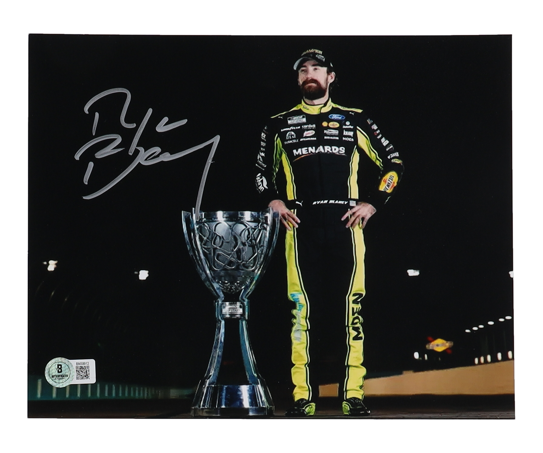 Photo measures 8" x 10" in size and has been hand-signed by Ryan Blaney.