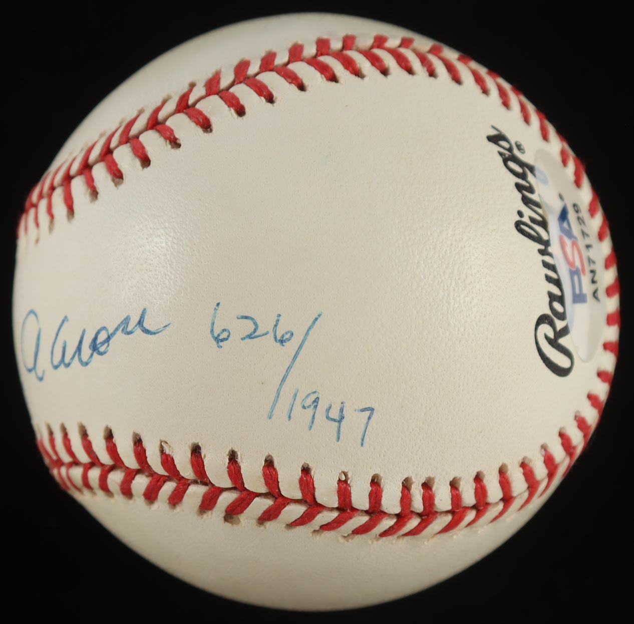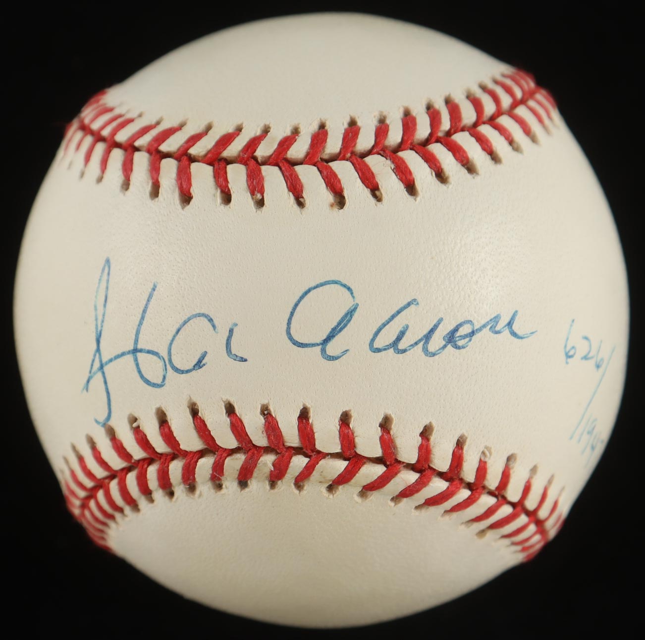 Hank Aaron Signed LE Jackie Robinson 50th Anniversary ONL Baseball With Wood & Glass Display Case (PSA)