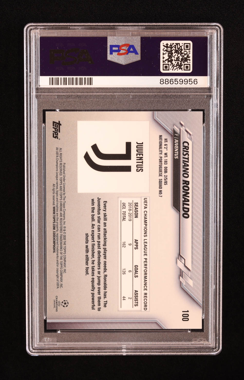 Cristiano Ronaldo 2019-20 Topps Chrome Sapphire UEFA Champions League #100 (PSA 10)