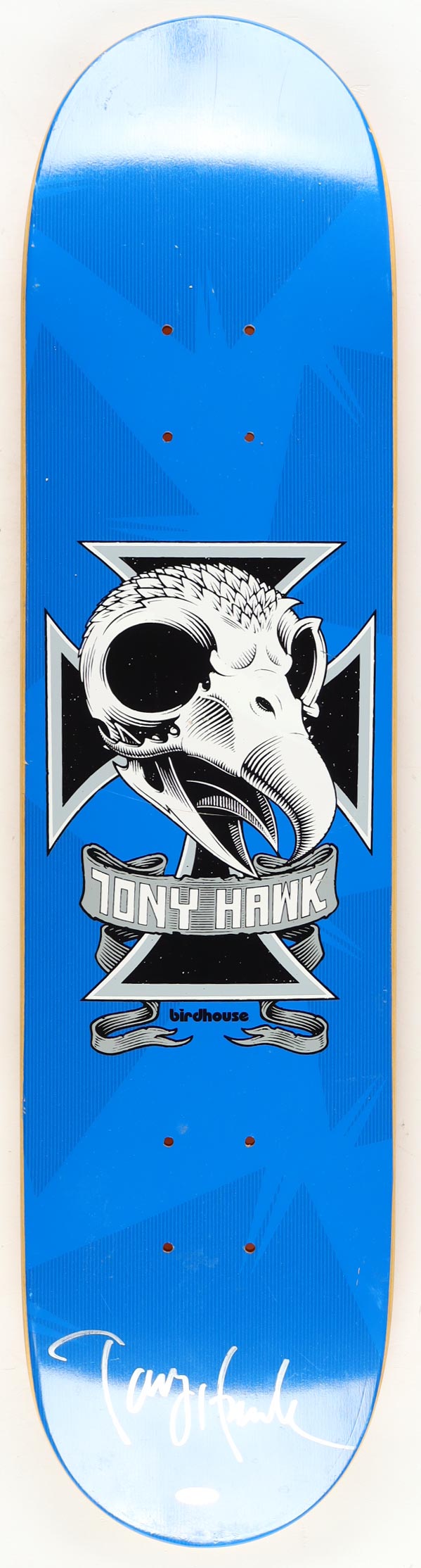 Full-size Tony Hawk Birdhouse Skateboard Deck measures approximately 32" in length and has been hand-signed by Tony Hawk (HOF). Please note, there is some scuffing on the deck.