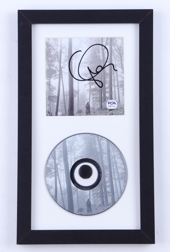 Custom frame measures approximately 8" x 13.5" in size. Features a "Folklore" CD album insert that has been hand-signed by Taylor Swift. The CD disc is included as shown. Please note, there is some scuffing on the frame.