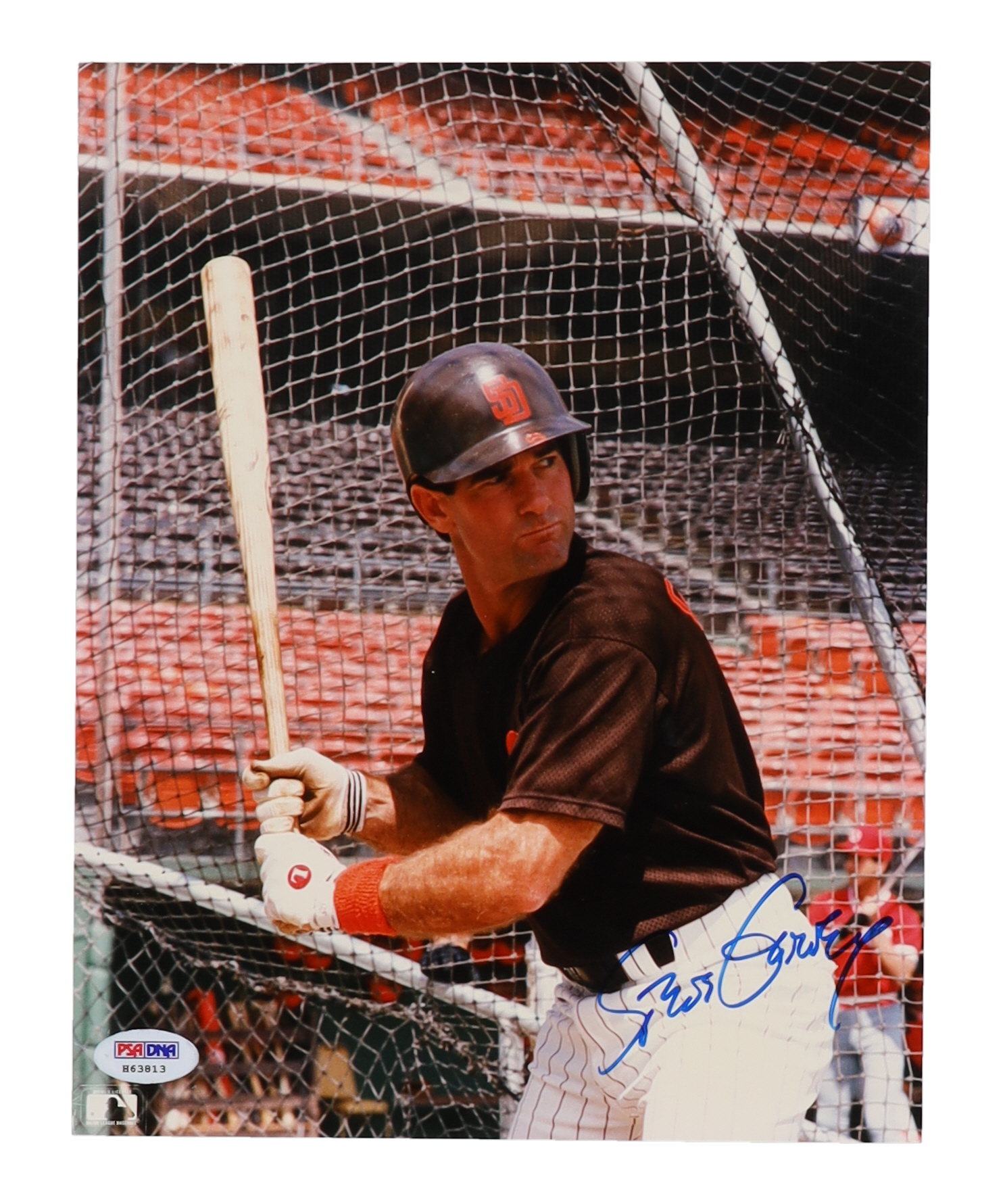 Photo measures 8" x 10" in size and has been hand-signed by Steve Garvey (San Diego Padres).