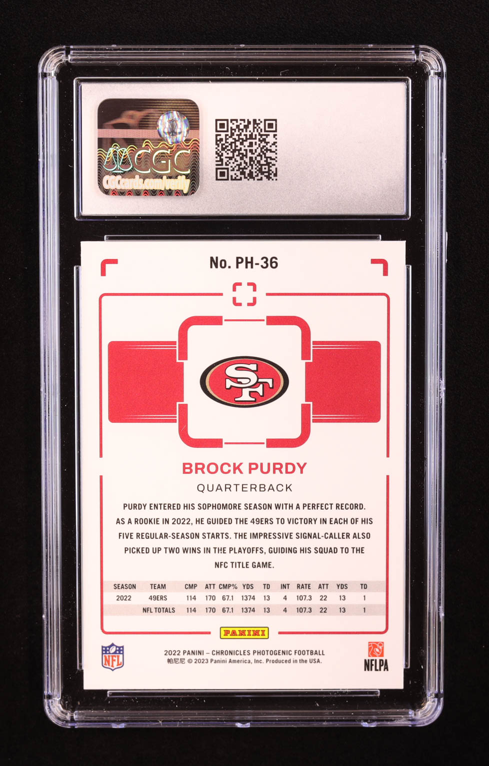 Brock Purdy 2022 Panini Chronicles Photogenic #36 RC (CGC 9)