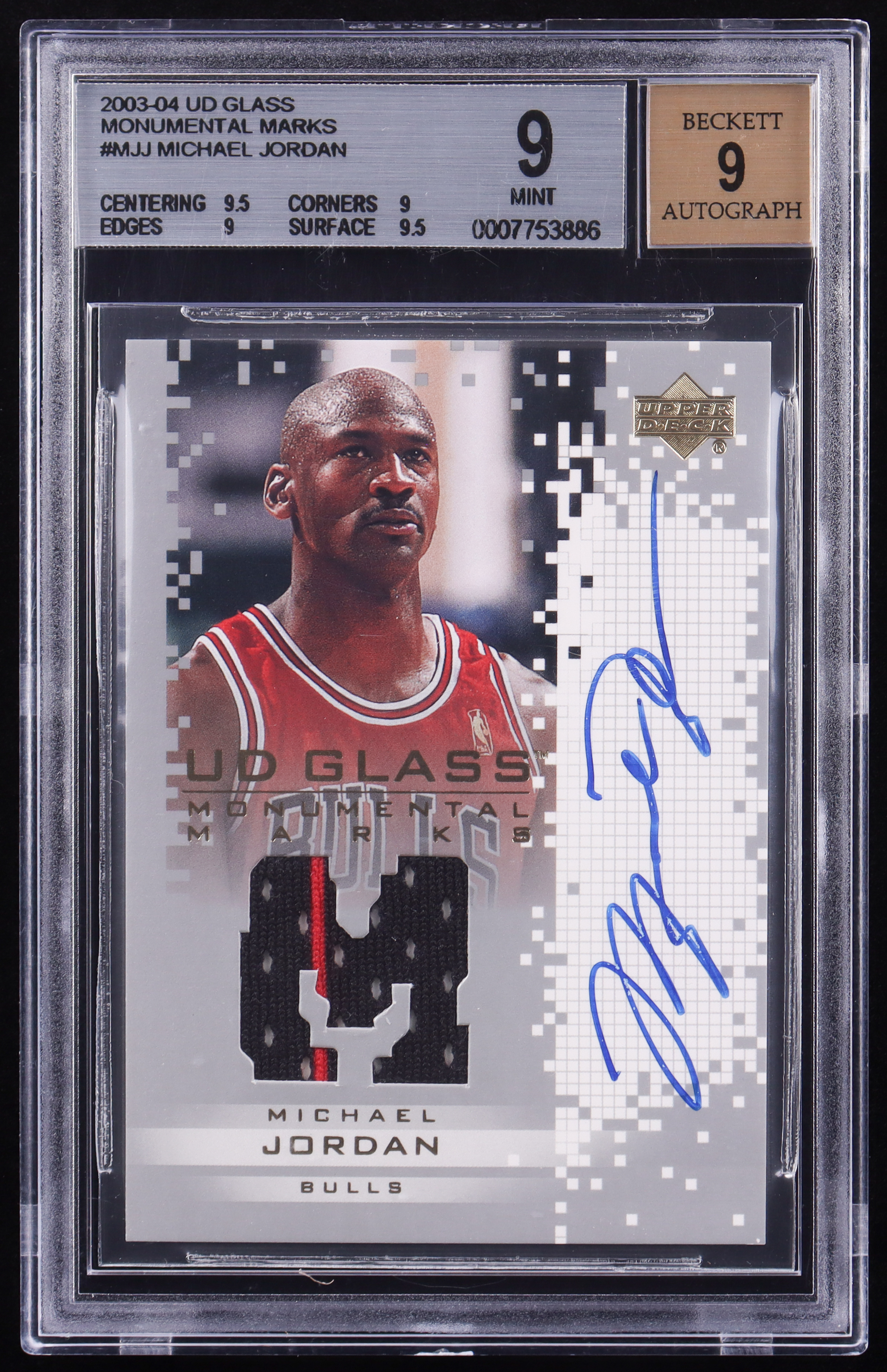 Michael Jordan 2003-04 UD Glass Monumental Marks #MJJ (BGS 9 | Autograph Graded 9)