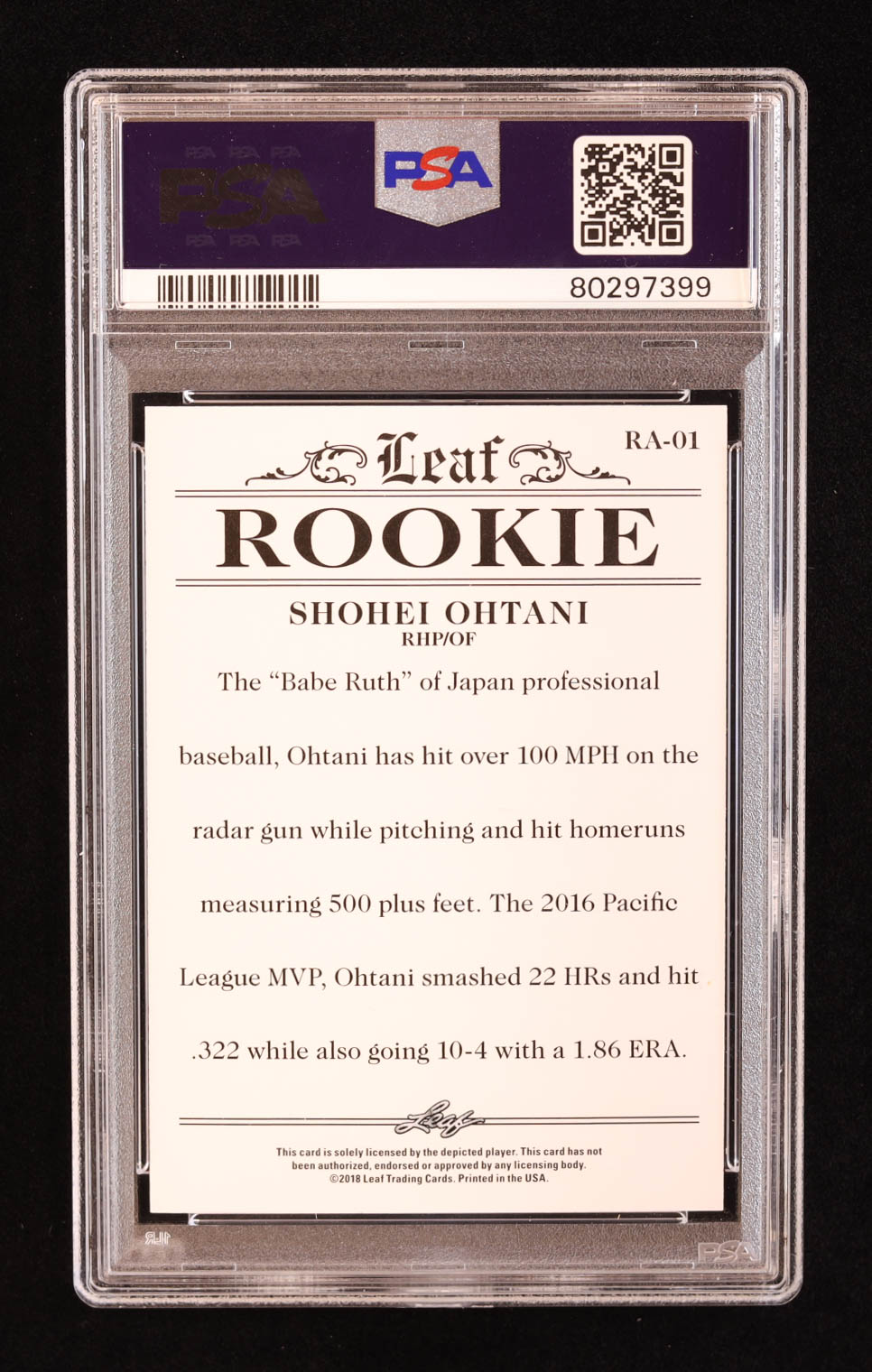 Shohei Ohtani 2018 Leaf Ohtani Rookie Achievement #RA01 RC (PSA 10)