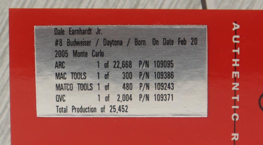 Dale Earnhardt Jr. Signed NASCAR #8 Budweiser / Daytona / Born On Date Feb 20 2005 Monte Carlo Club Car - 1:24 Premium Diecast Car (Dale Jr.)