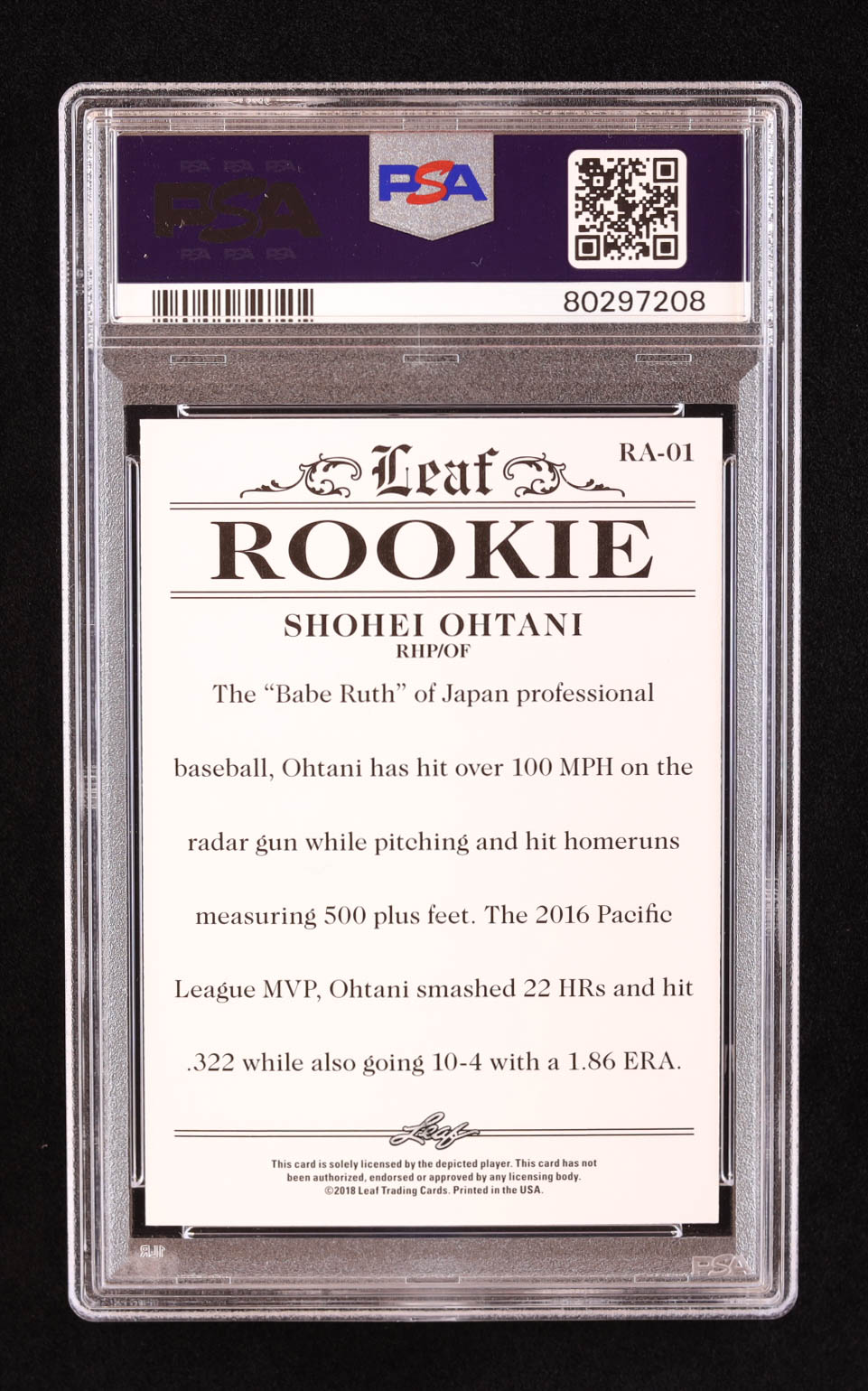 Shohei Ohtani 2018 Leaf Ohtani Rookie Achievement #RA01 RC (PSA 10)