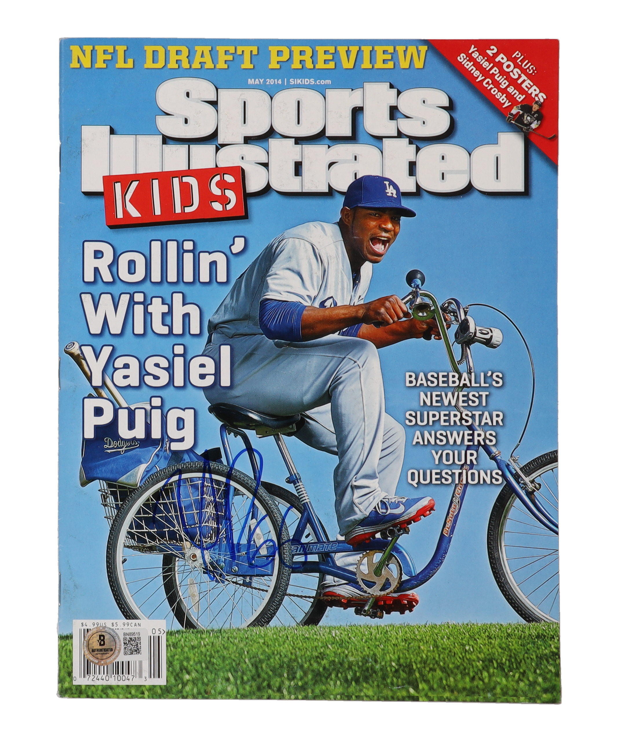 May 2014 issue of Sports Illustrated Kids magazine has been hand-signed on the cover by Yasiel Puig (Los Angeles Dodgers).