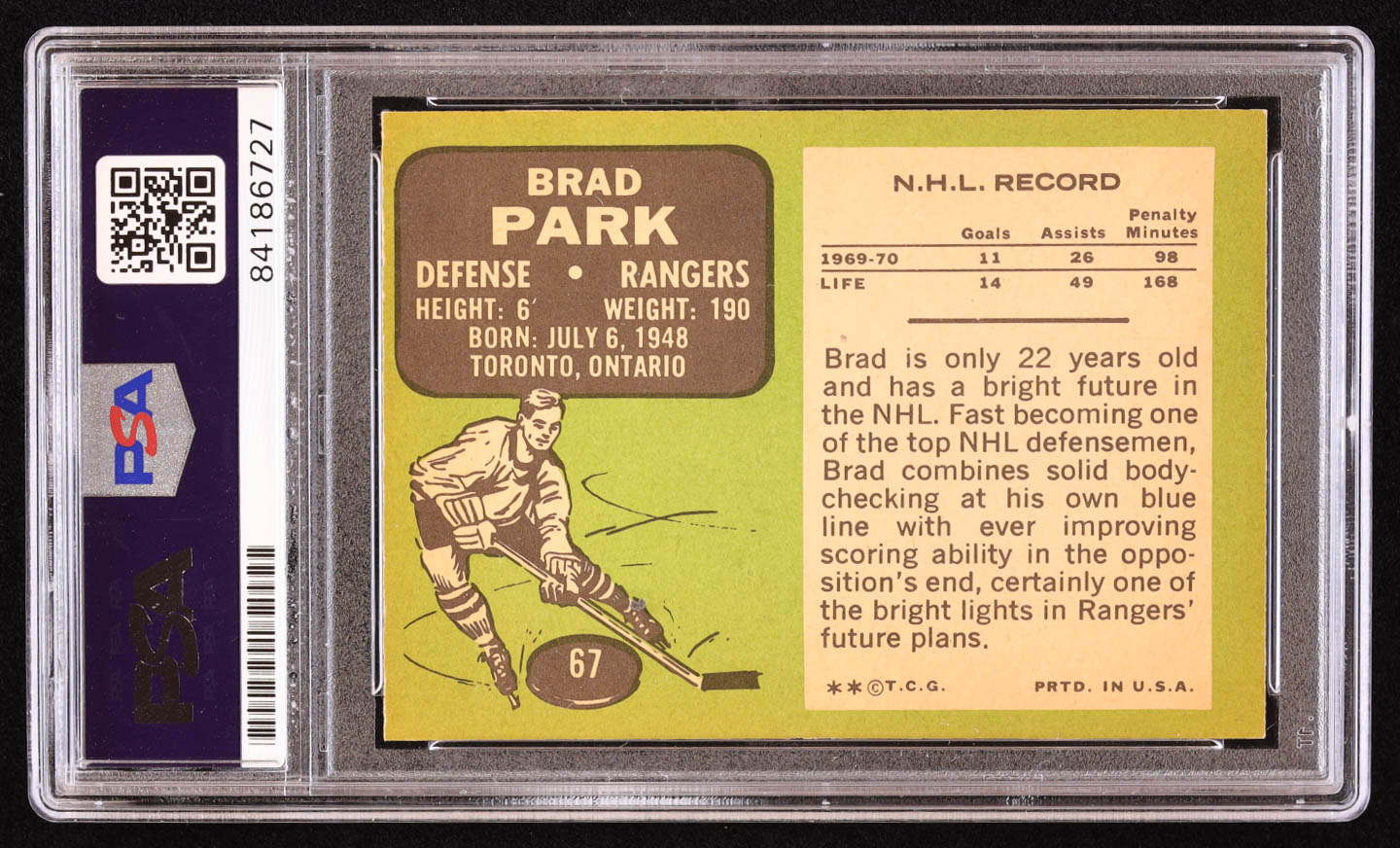 Brad Park Signed 1970 Topps #67 (PSA)