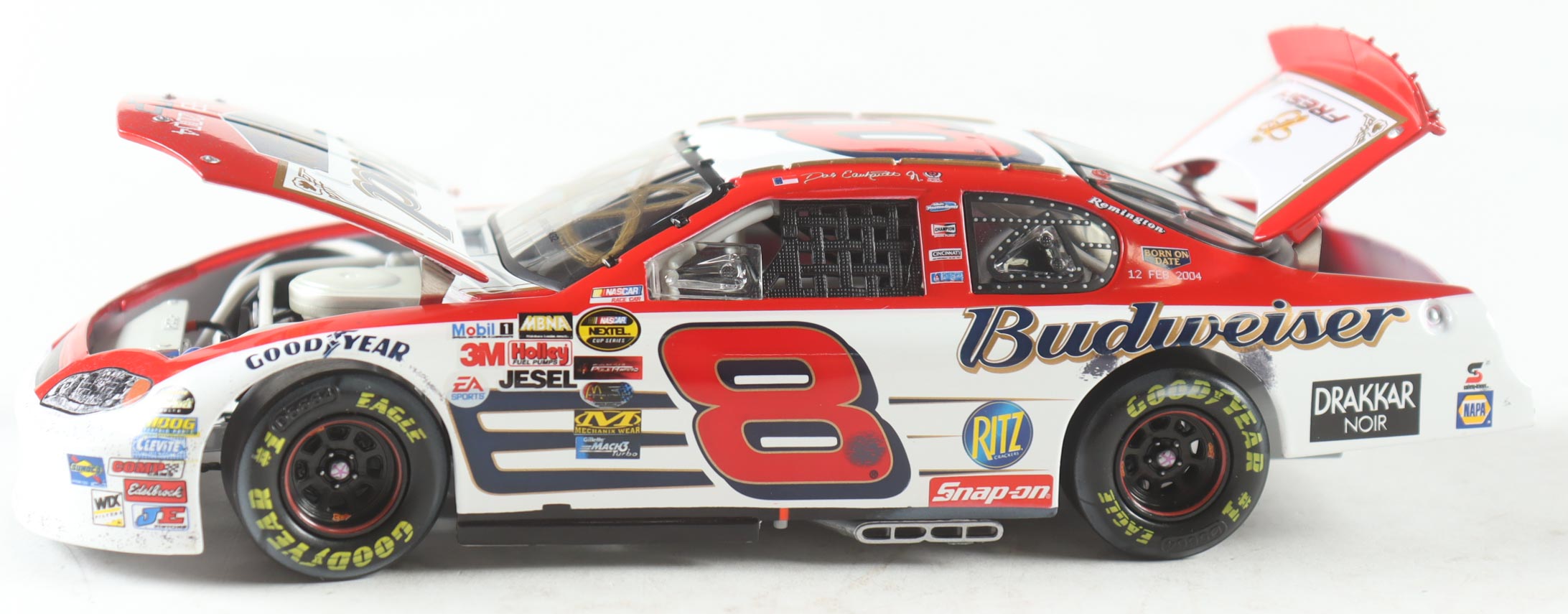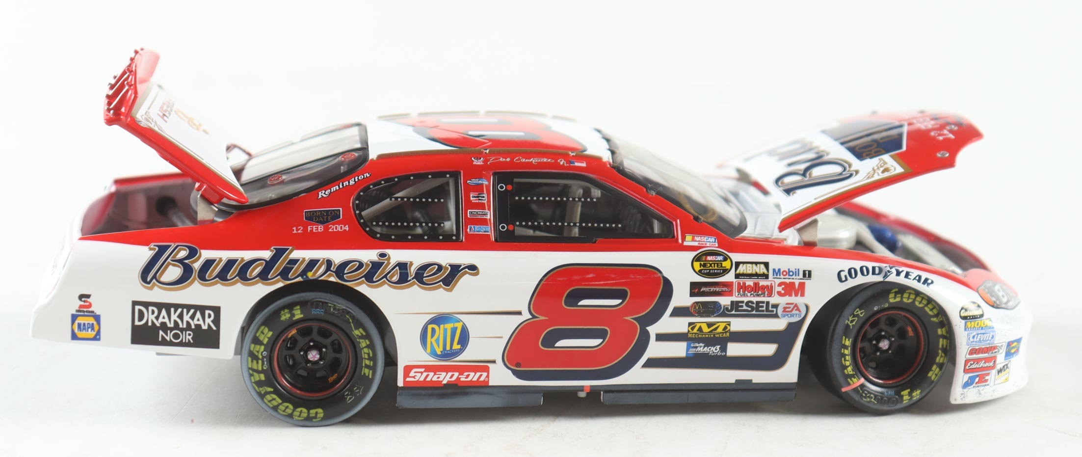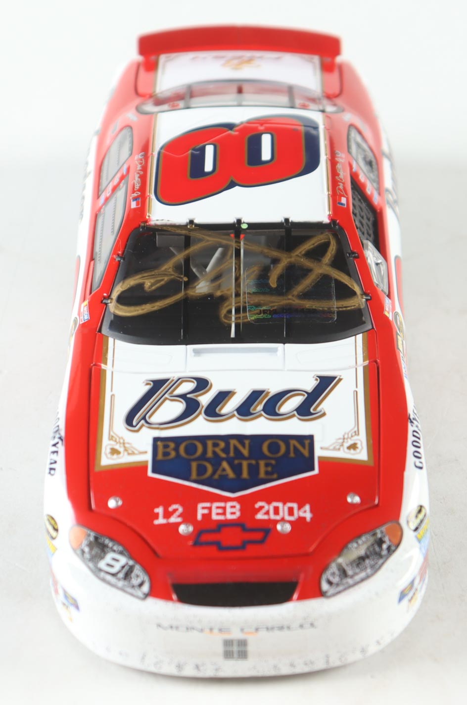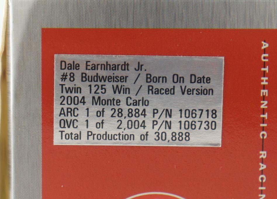 Dale Earnhardt Jr. Signed NASCAR #8 Budweiser / Born On Date Twin 125 Win / Raced Version 2004 Monte Carlo - 1:24 Premium Diecast Car (Dale Jr.)
