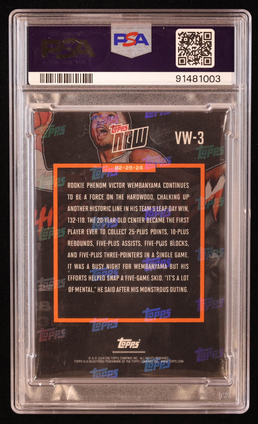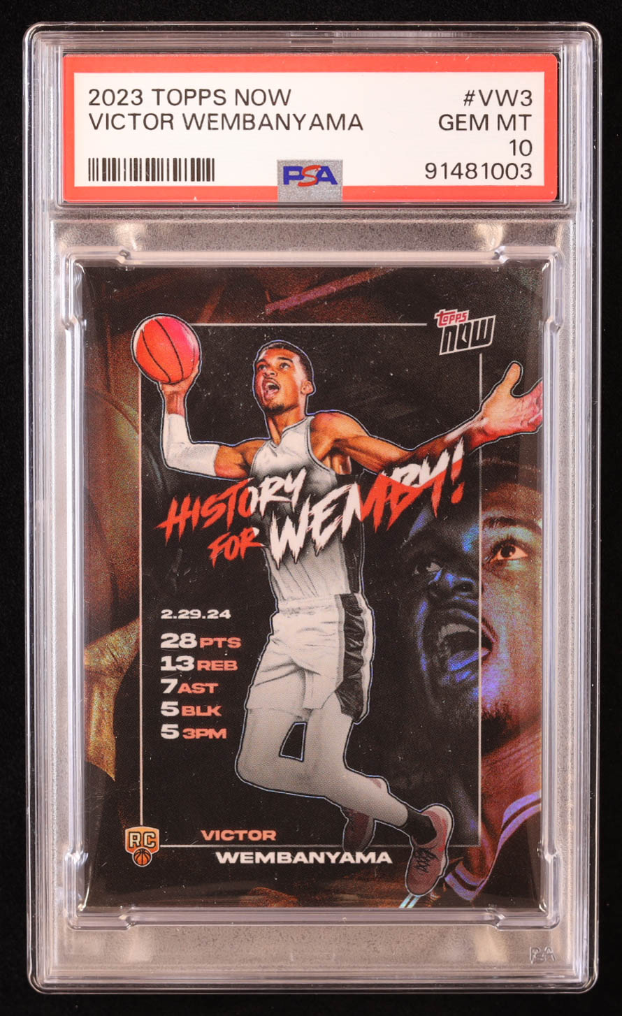 Victor Wembanyama 2023-24 Topps Now Victor Wembanyama #VW3 RC (PSA 10)