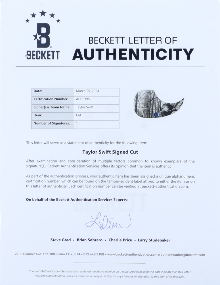 The autograph includes an official Beckett Authentication Services hologram and matching LOA for authenticity purposes.