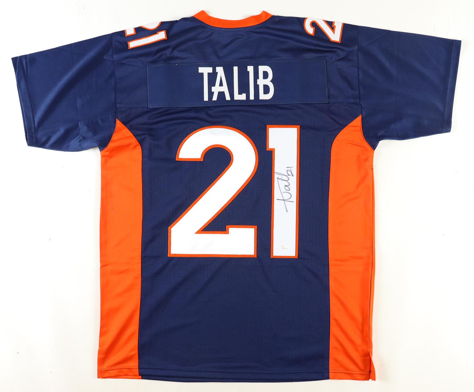 Custom jersey. Everything sewn on, size XL. Hand-signed by Aqib Talib.