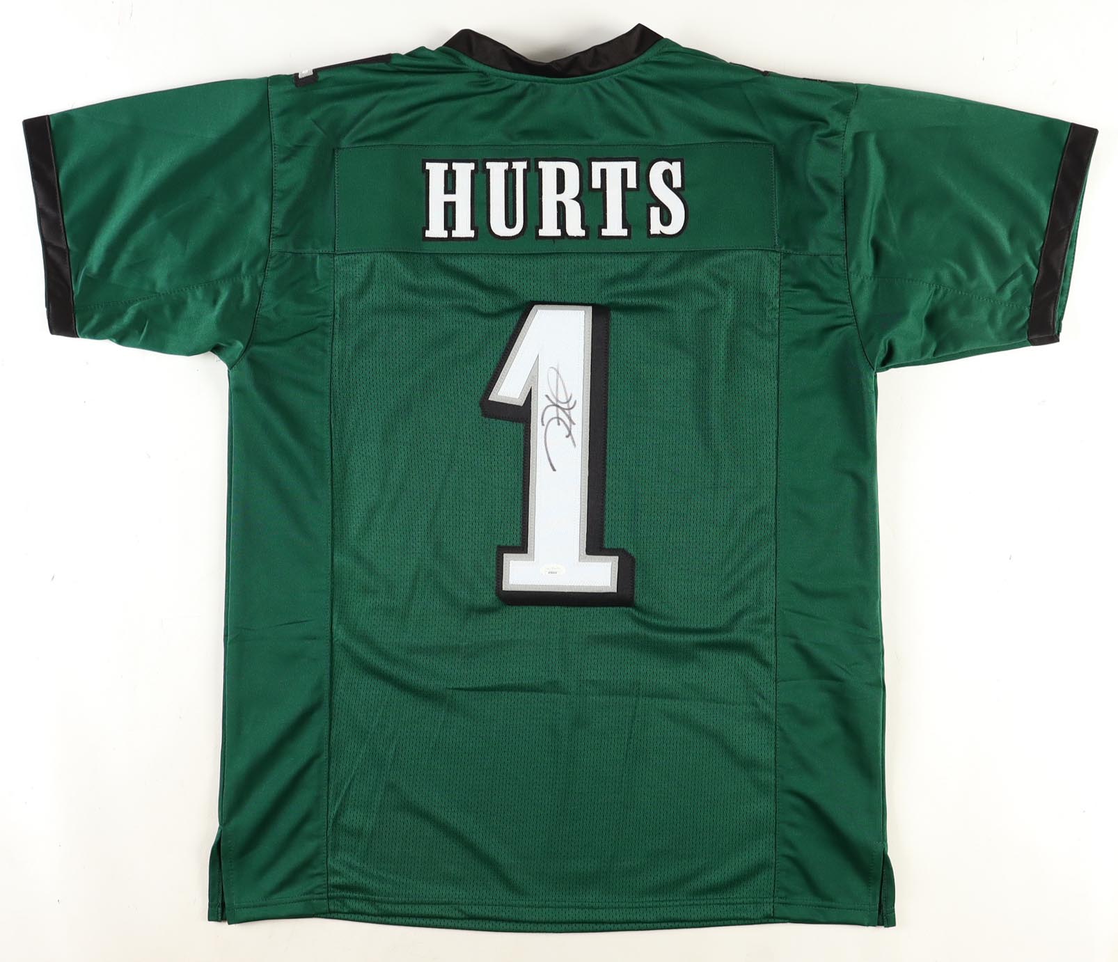 Custom jersey with everything sewn on, size XL. Hand-signed by Jalen Hurts.
