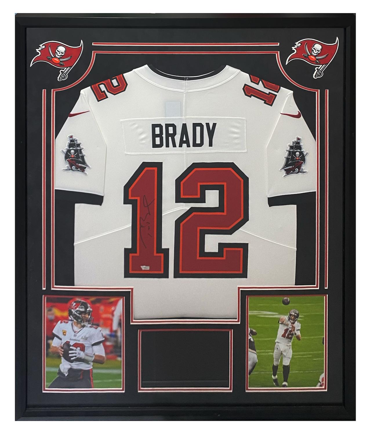 Tom Brady Signed Custom Framed Authentic Buccaneers Jersey with Actual Video Display Monitor to Play Highlights (Fanatics)