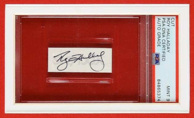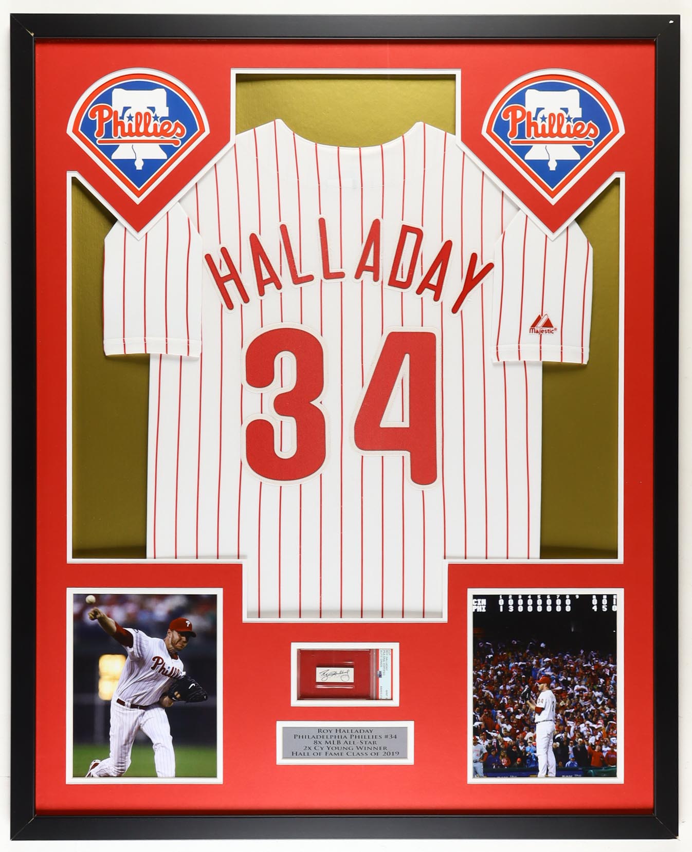Roy Halladay Signed Custom Framed Cut Display with Unsigned Jersey (PSA)