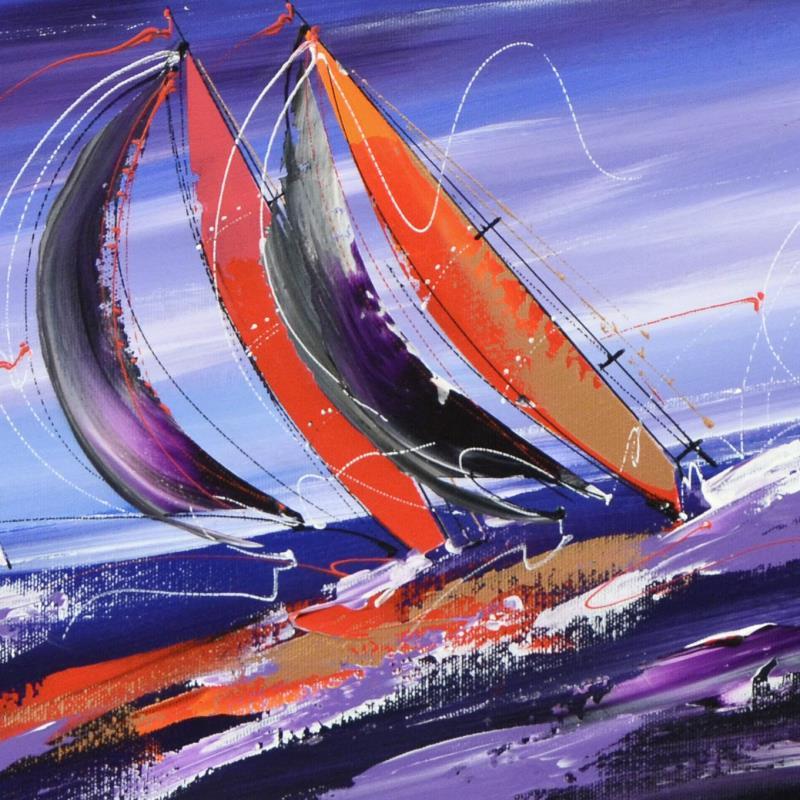 Born in 1959, in Kazakhstan, Natalia Sinkovsky finished her Master’s in Architecture in her homeland, where she also took drawing and painting courses. Sinkovsky immigrated to Israel with her family in 1995 and initially worked as an interior designer and architect, before expanding into painting professionally in 2002. Primarily painting in acrylic, Sinkovsky initiates her artistic process with an idea, rather than a predefined sketch, and applies layers of paint in thick application using a palette knife, before adding small graphic elements. She appreciates all art styles and movements, but is primarily inspired by abstract art and modern design, due in part to her background in architecture. Her sailboats series are influenced by her appreciation for the Expressionist, Baroque, and Cubist movements. In her artwork, Sinkovsky employs bright, cheerful colors to complement her optimistic outlook on life.