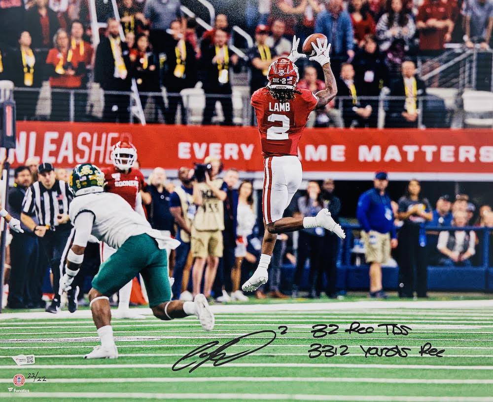 CeeDee Lamb Signed Oklahoma Sooners LE 16x20 Photo Inscribed "32 Rec Tds 3312 Yards Rec" (Fanatics)