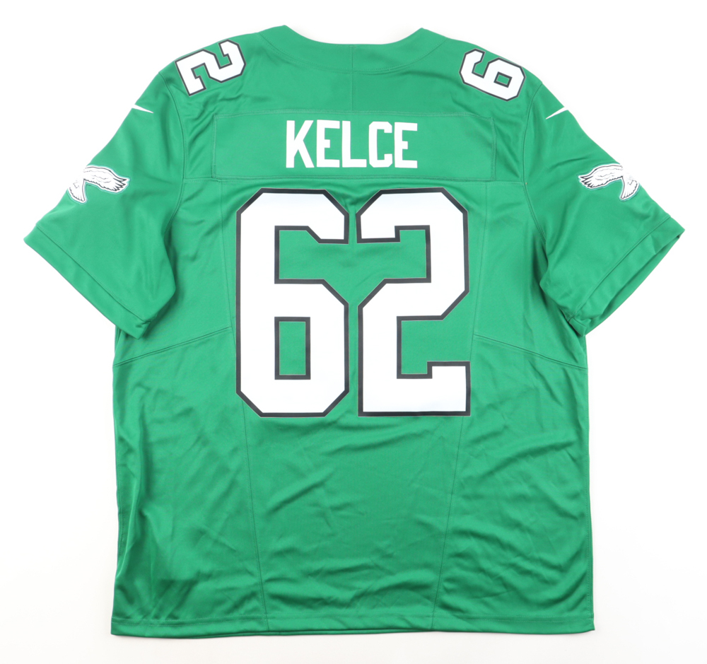 Nke jersey with everything pressed on, size XL. Hand-signed by Jason Kelce (Philadelphia Eagles). Please note, the signature has bled.