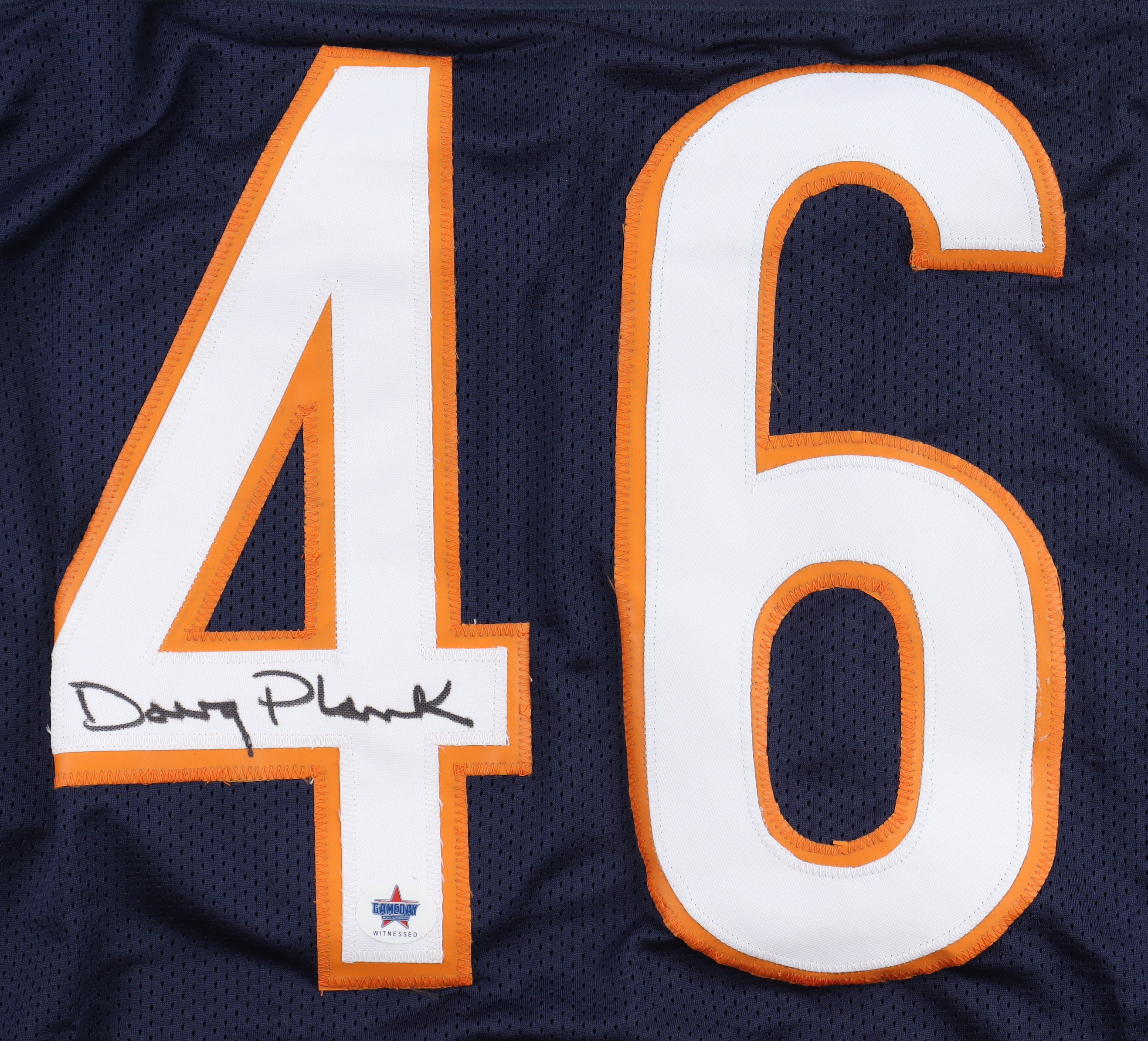 Custom jersey with everything sewn on, size XL. Hand-signed by Doug Plank.