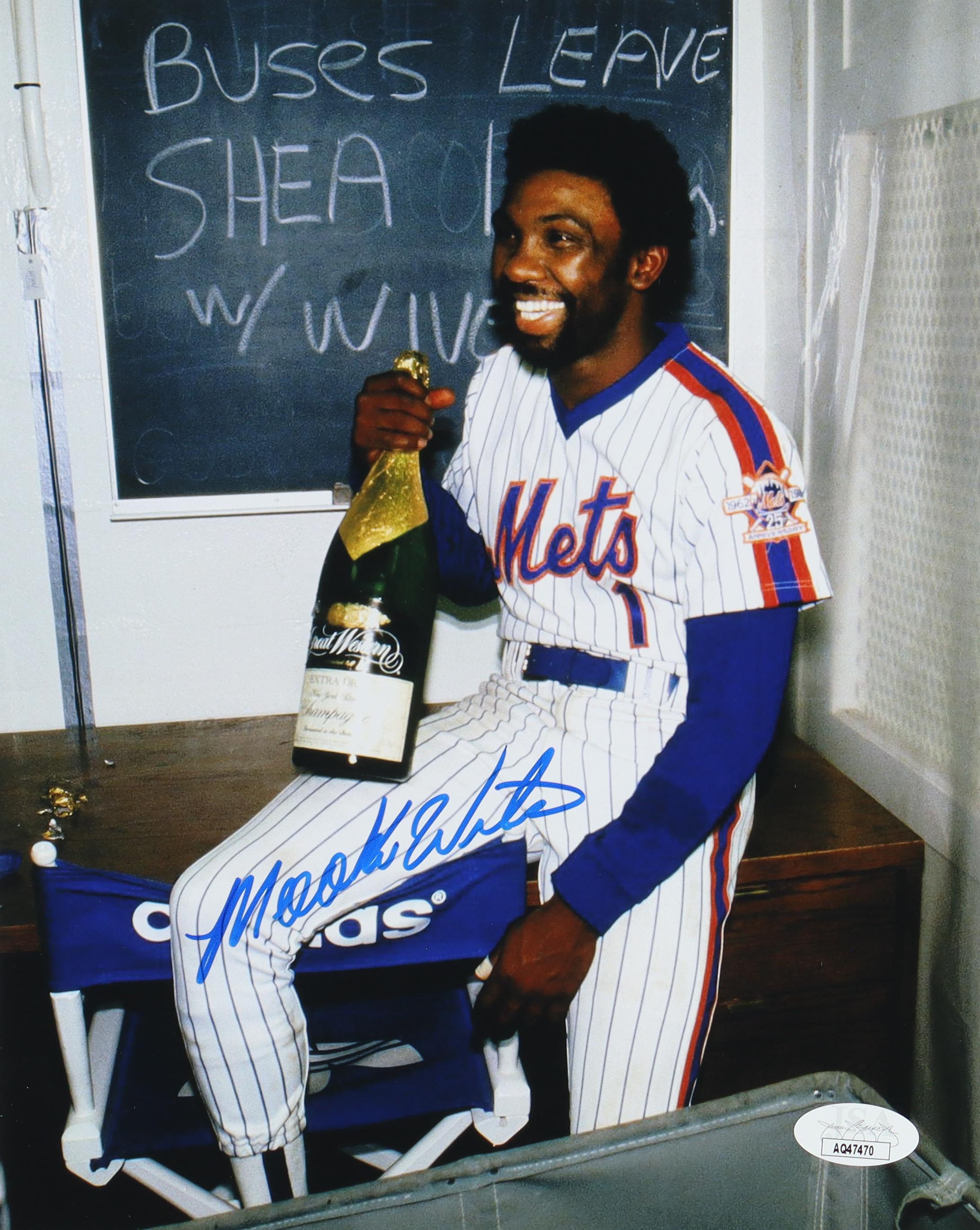 Photo measures approximately 8" x 10" in size. Hand-signed by Mookie Wilson (New York Mets).