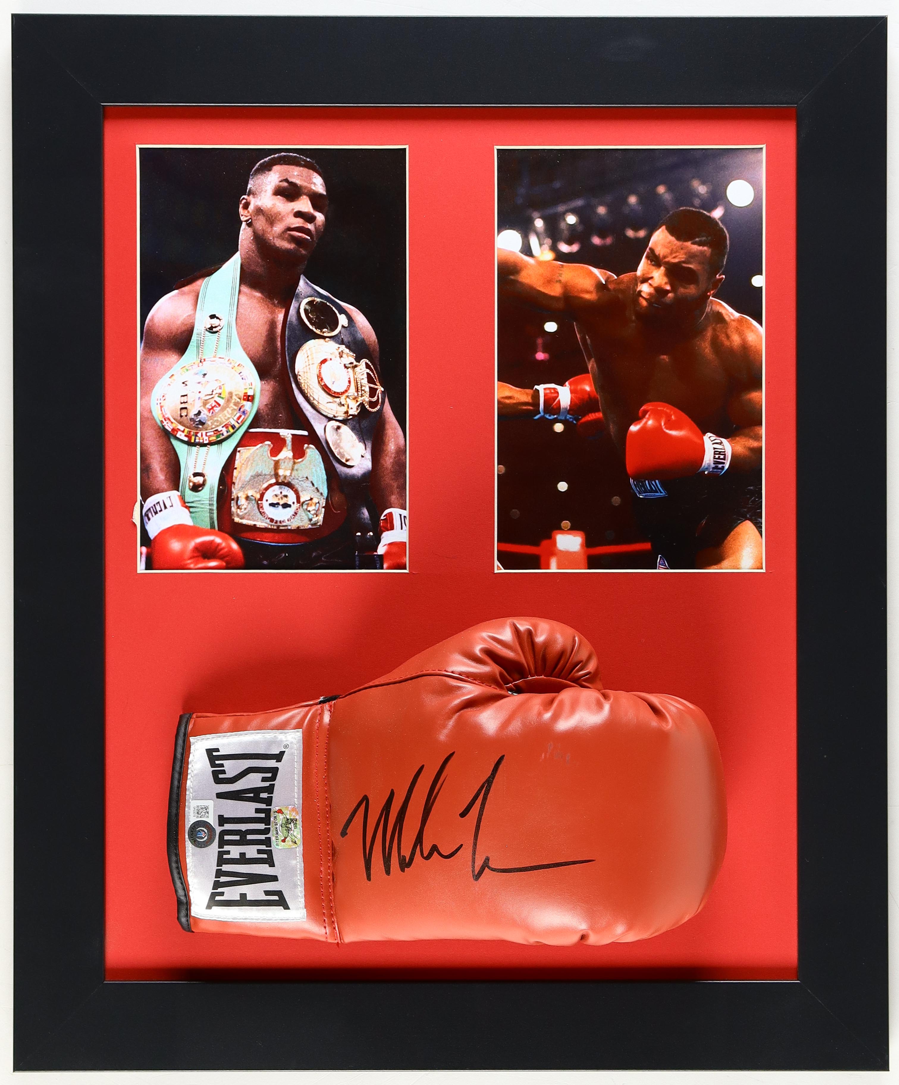 Custom frame measures 18" x 22" in size and features an Everlast boxing glove that has been hand-signed by Mike Tyson (HOF).