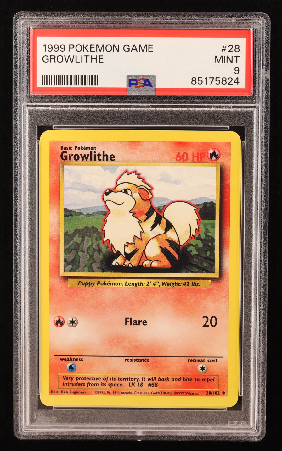 Growlithe 1999 Pokemon Base Unlimited #28 (PSA 9)