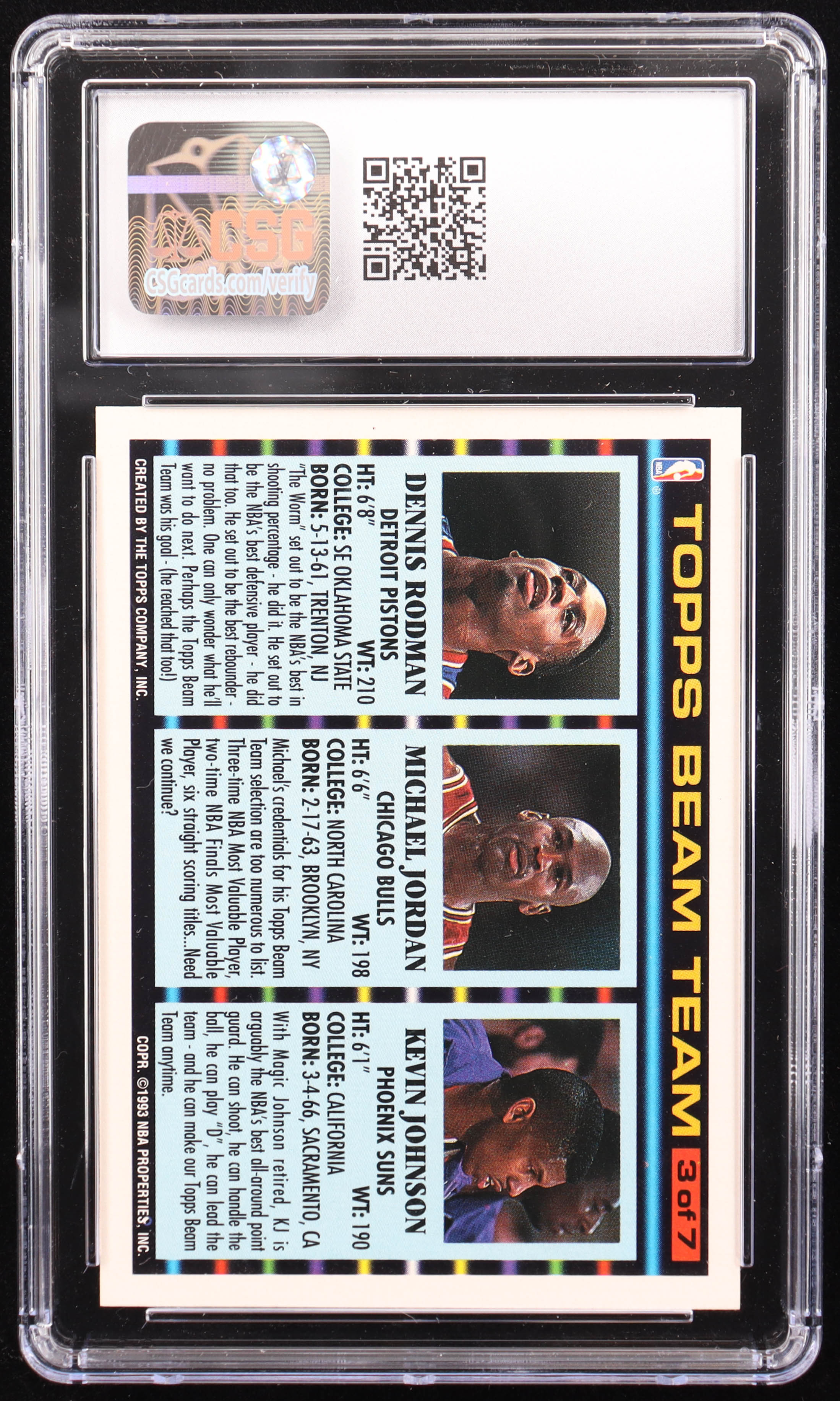 Kevin Johnson / Michael Jordan / Dennis Rodman 1992-93 Topps Beam Team #3 (CGC 9)