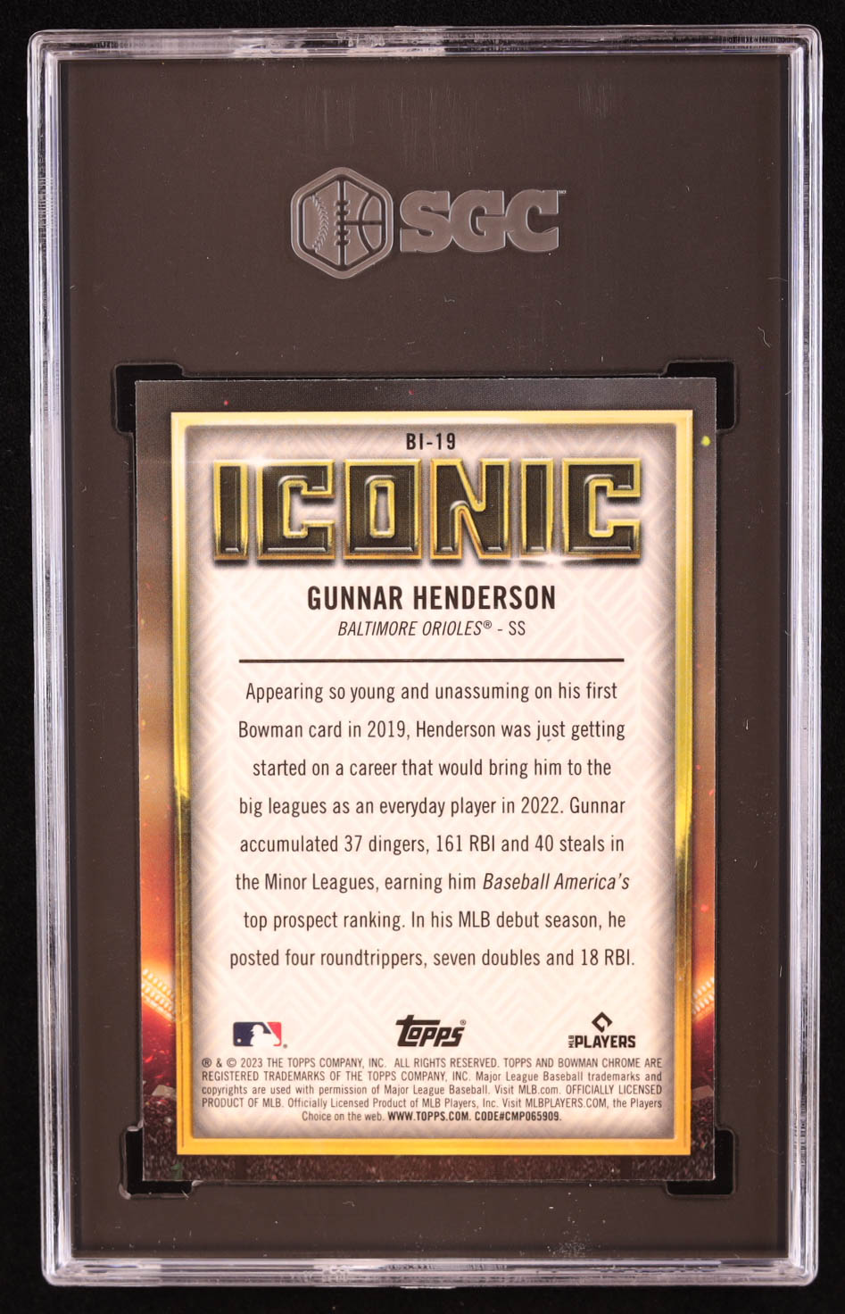Gunnar Henderson 2023 Bowman Chrome Bowman Iconic #BI19 RC (SGC 9.5)